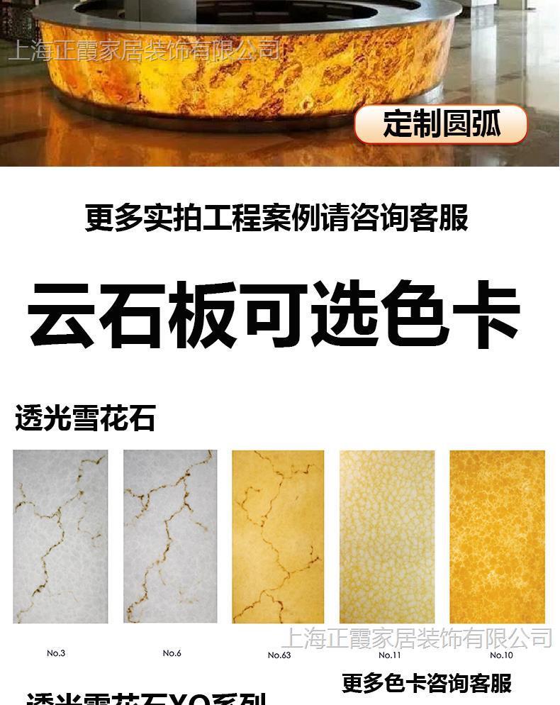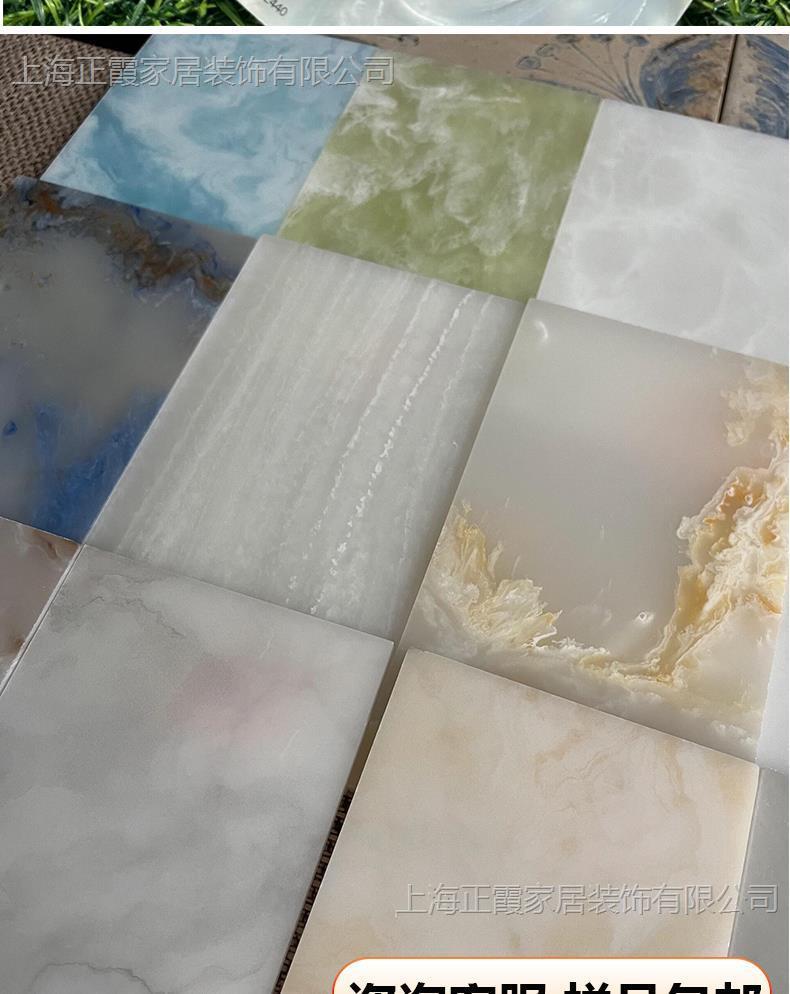 Tablero de mármol translúcido, barra de piedra de nieve, sala de exposiciones de celebridades de Internet, techo, pantalla de partición de oficina, superficie decorativa acrílica