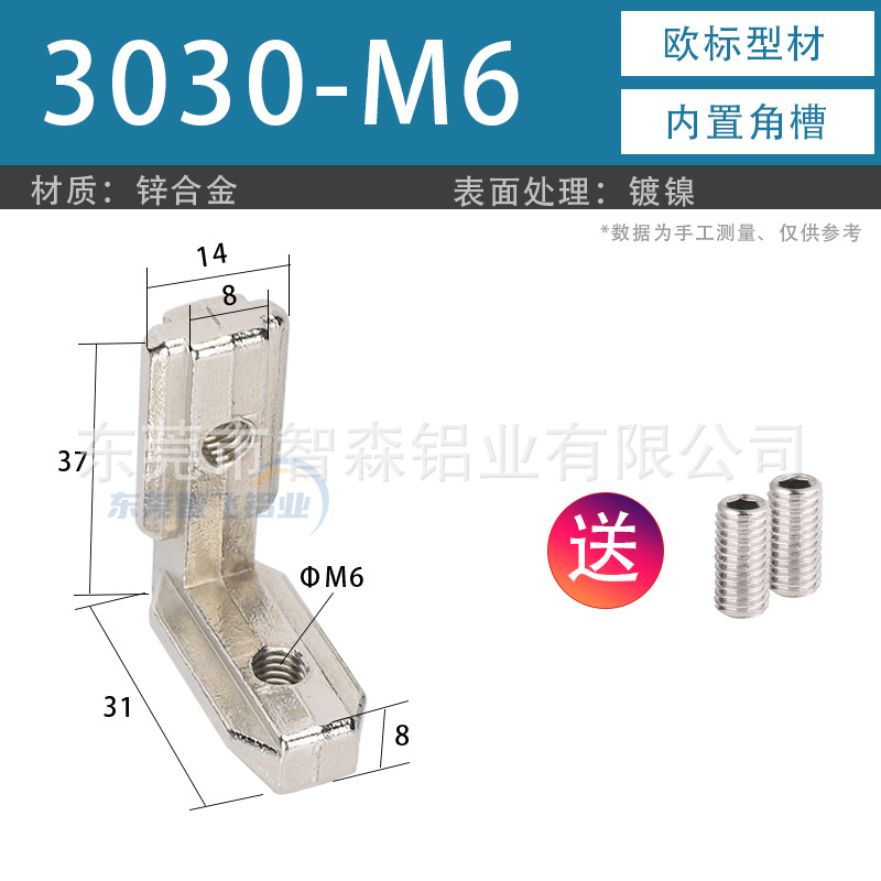 Ranura angular de aleación de zinc 3030m6 + alambre superior M6 * 8 estándar europeo