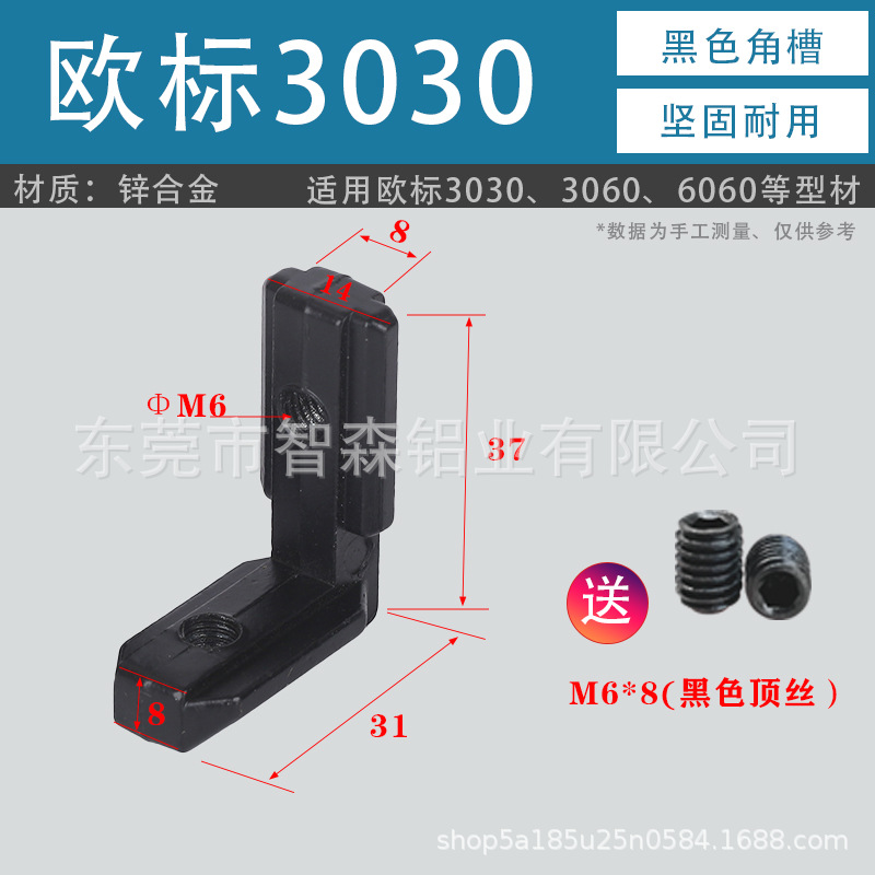 Estándar europeo 3030m6 ranura de esquina negra + M6 * 8 alambre superior