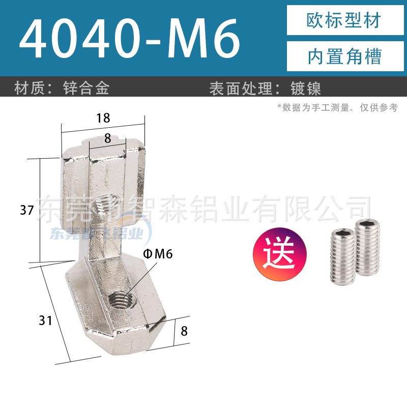 Estándar europeo 4040m6 ranura angular de aleación de zinc + M6 * 10 alambre superior