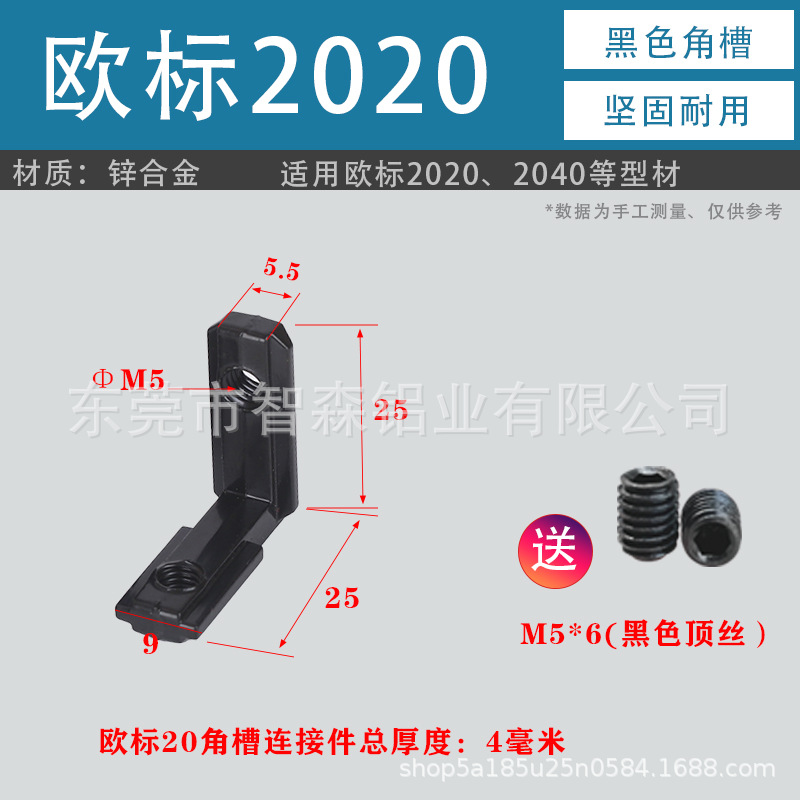 Estándar europeo 2020m5 ranura de esquina negra + M5 * 6 alambre superior