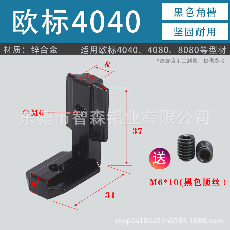 Estándar europeo 4040m6 ranura de esquina negra + M6 * 10 alambre superior