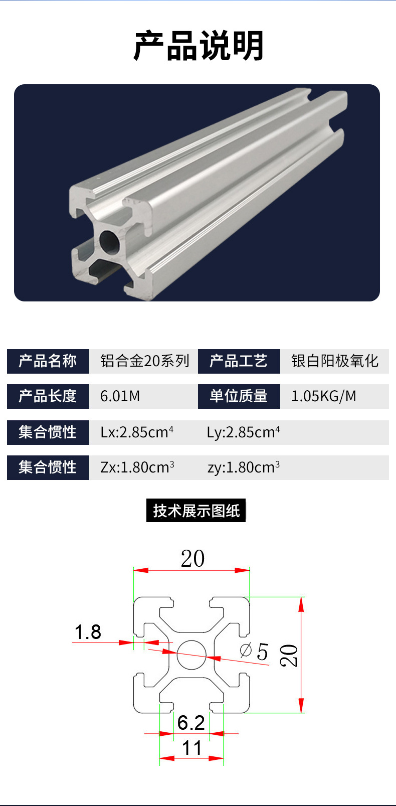 | Número de artículo | Perfiles de aluminio 2020 |