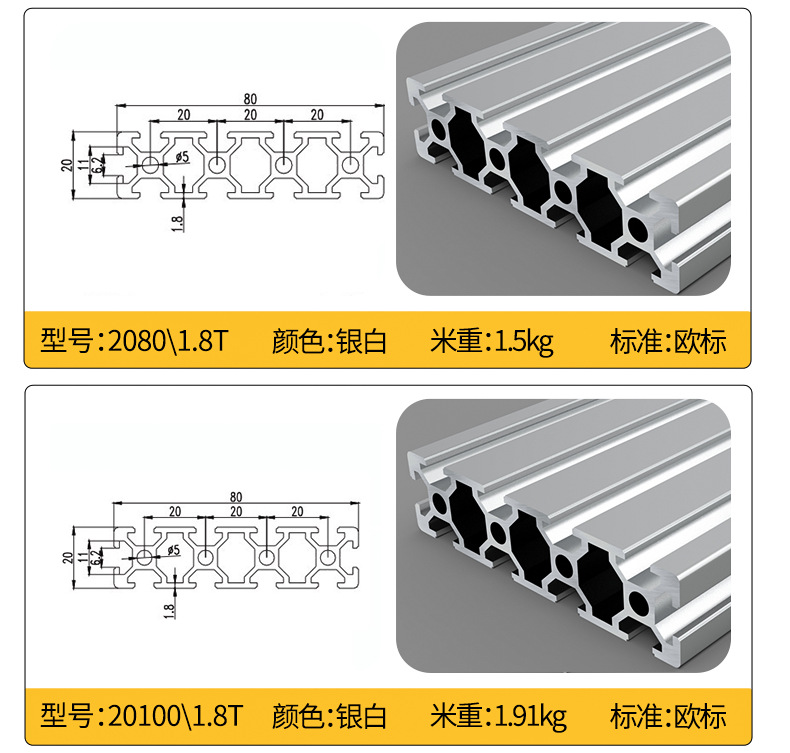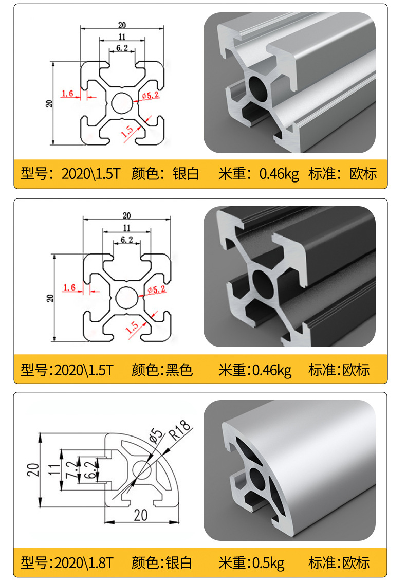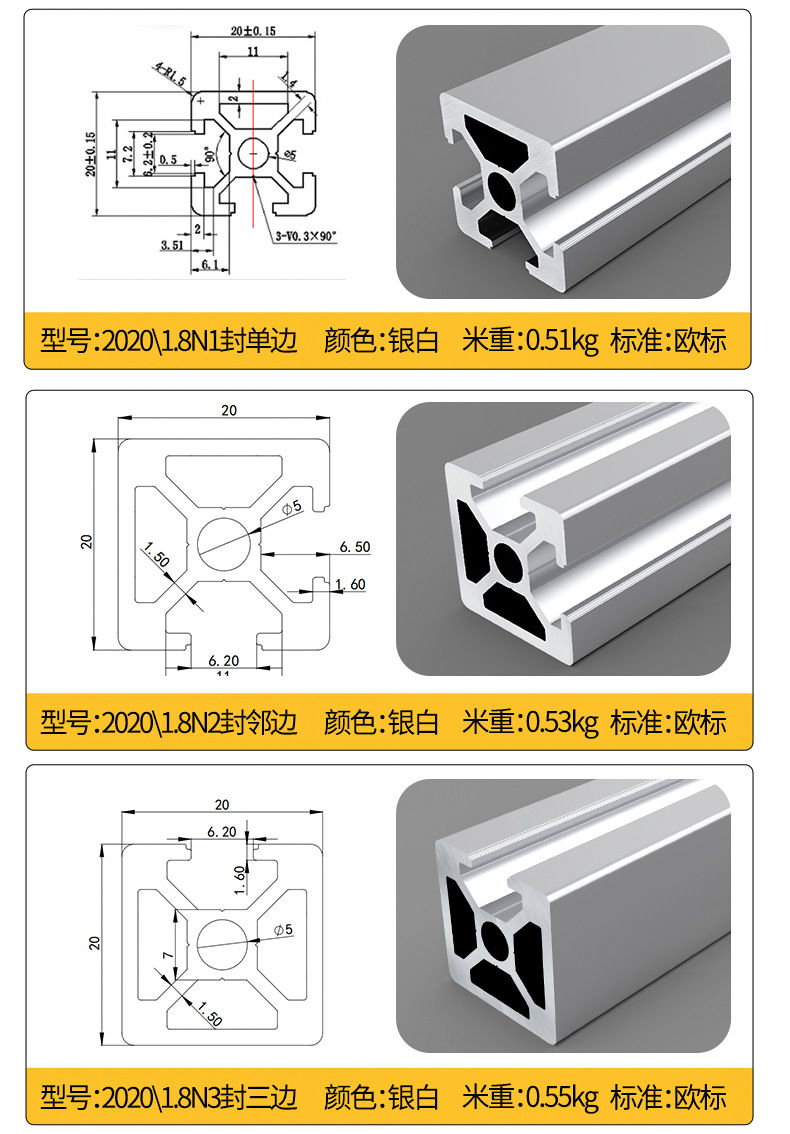 | Perfiles industriales de aluminio | Perfiles de aluminio estándar europeo 2020 |