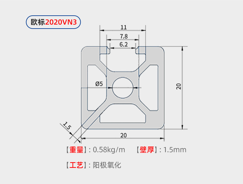 20 serie de perfiles de aluminio estándar europeo 2020 / 2025 aleación de aluminio productos de aluminio u ranura procesamiento personalizado