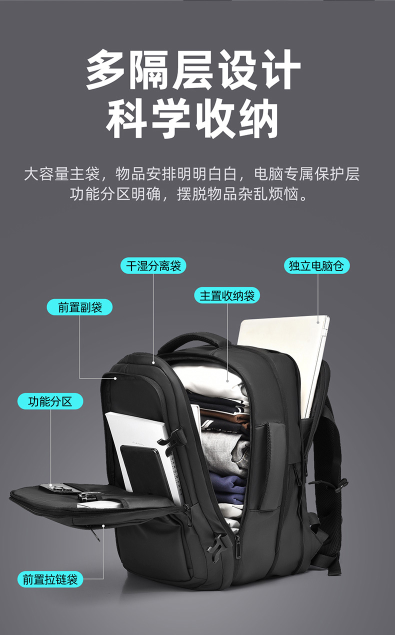 Mochila para hombre de gran capacidad, mochila de viaje para ir al trabajo, con separación de compartimentos secos y húmedos, mochila para hombre para viajes de negocios.