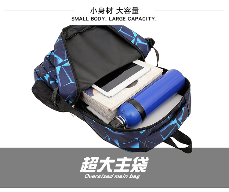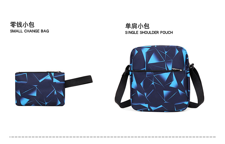 Conjunto de mochila de tres piezas de nailon informal transfronterizo, mochila escolar estampada a la moda, mochila deportiva y de ocio de gran capacidad para hombre