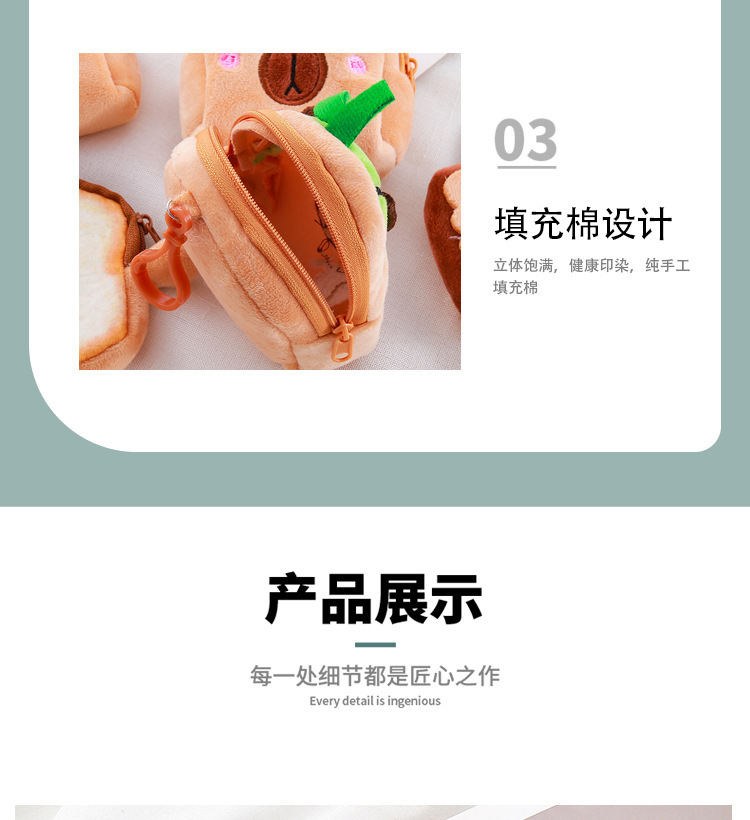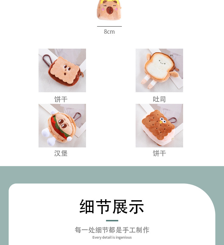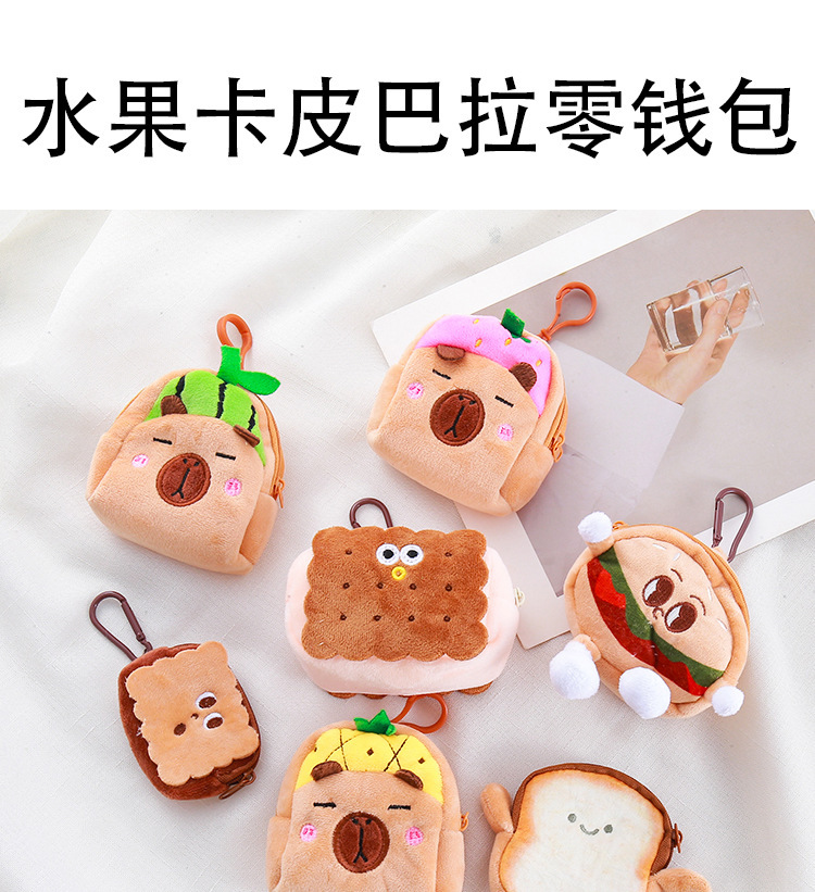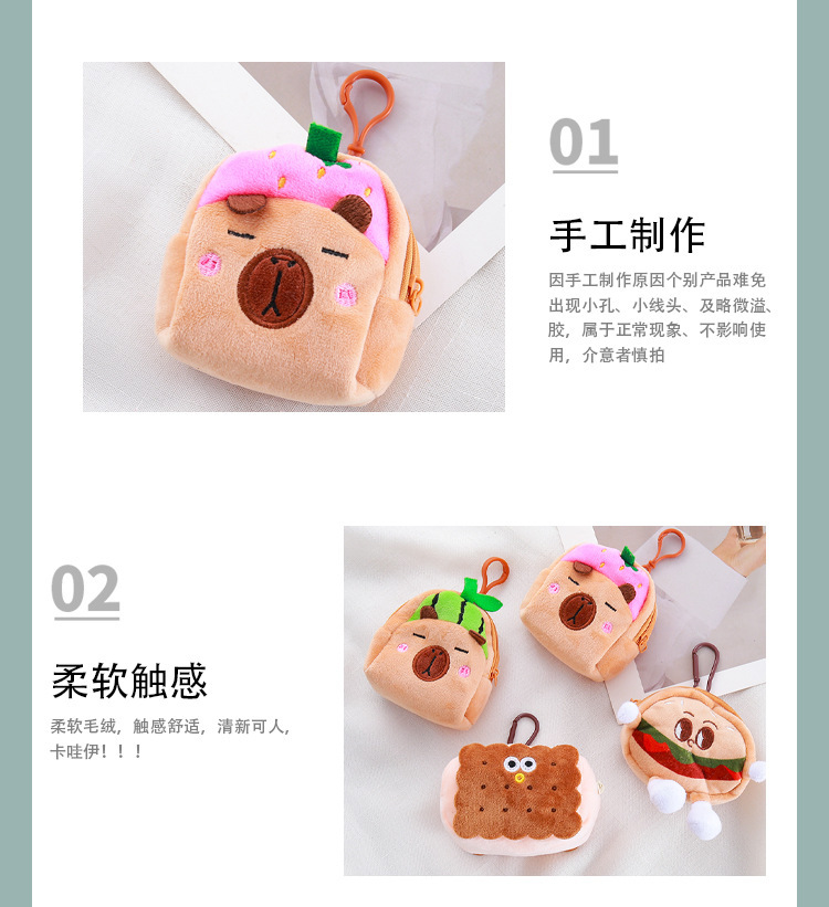 Monedero de hamburguesa de felpa, pequeño libro rojo, el mismo estilo, bolsa de auriculares de juguete Kapibala, muñeca de la serie de dibujos animados, dinero personalizado