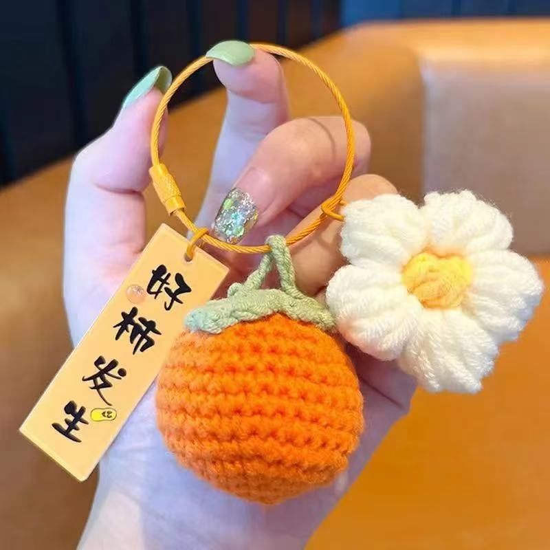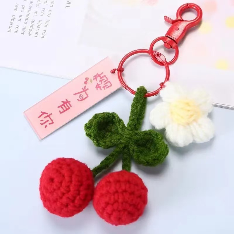 Nuevo gancho tejido de gancho de gancho Ruyi llavero serie de frutas bolsas de accesorios de decoración de automóviles acompañantes regalos al por mayor