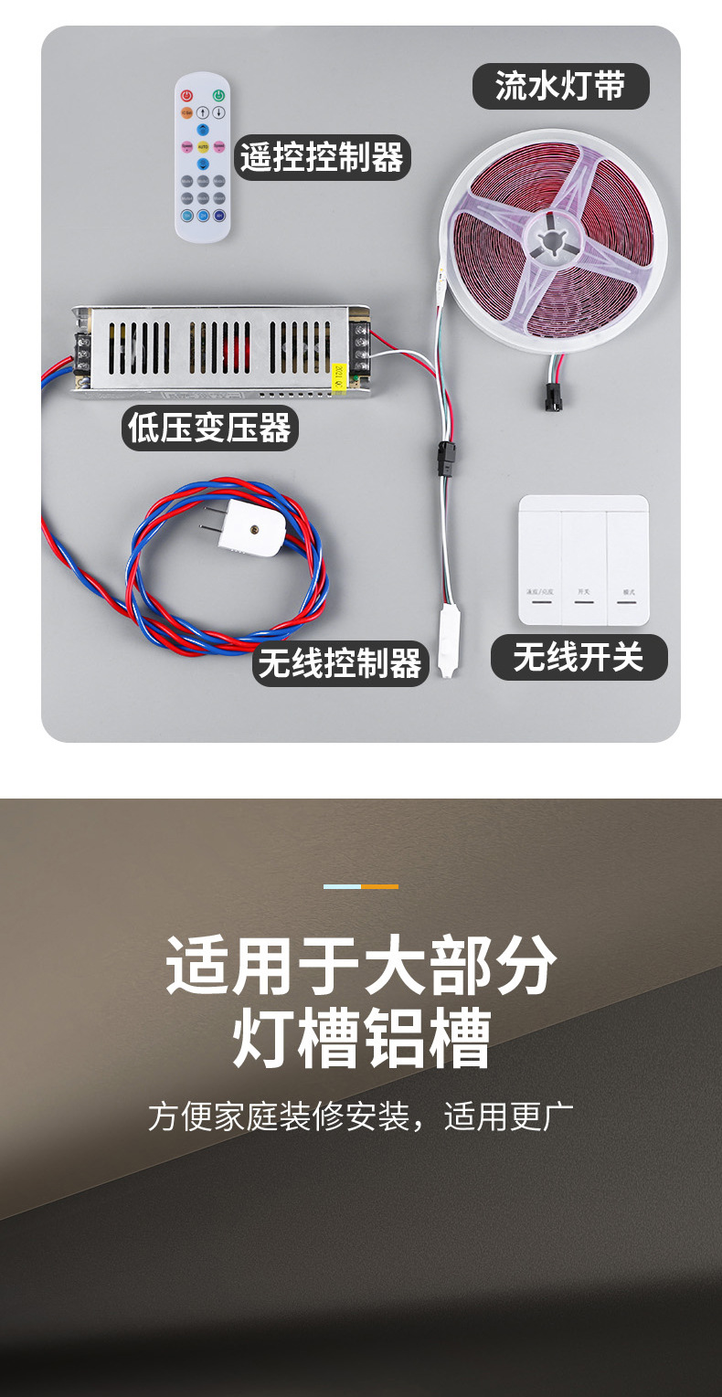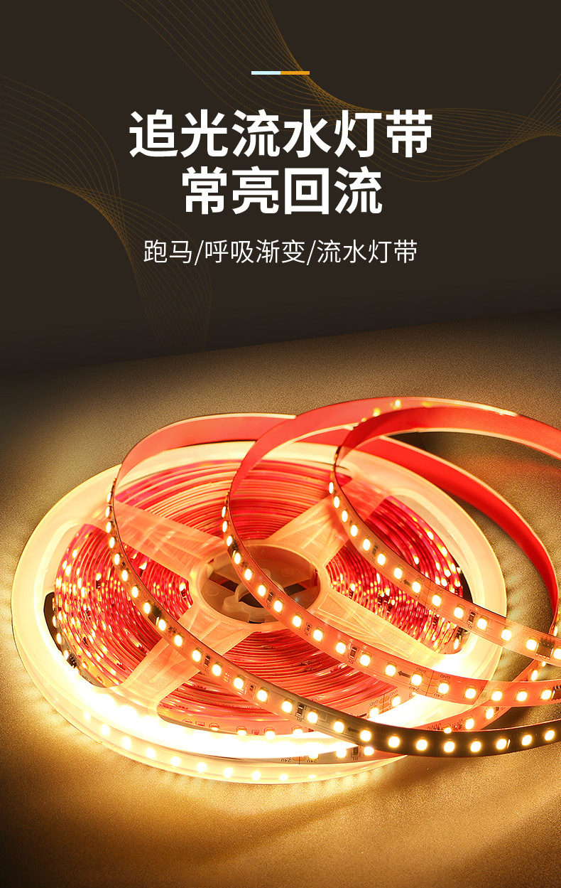 2835 tira de luz de agua corriente 24V luz monocromática de bajo voltaje persiguiendo caballo boda lluvia de meteoros línea autoadhesiva tira de luz