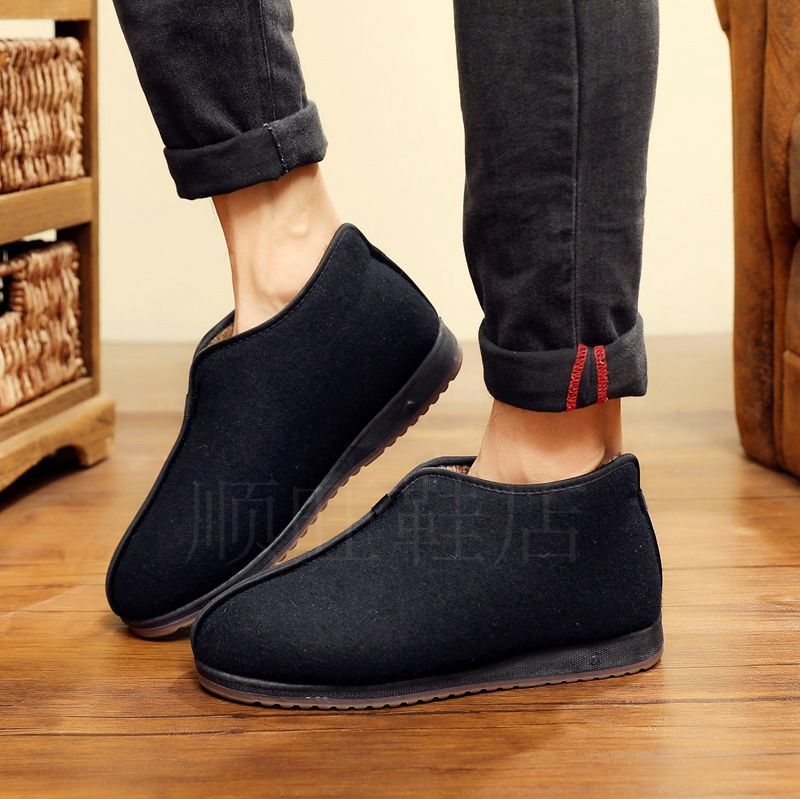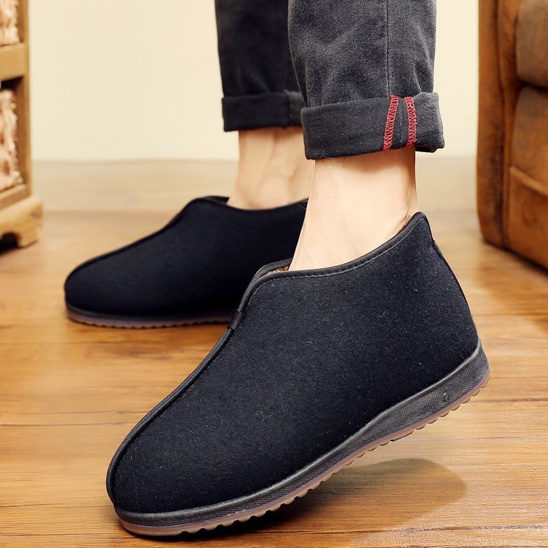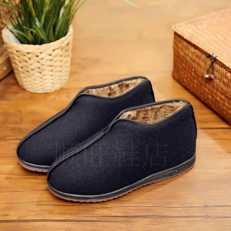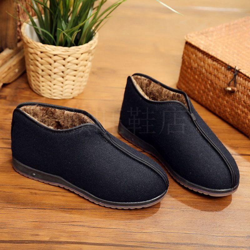 Zapatos de algodón de invierno de vello para padres viejos, zapatos de algodón de hombre calientes antideslizantes de alto nivel, zapatos de algodón tradicionales viejos padres de Beijing