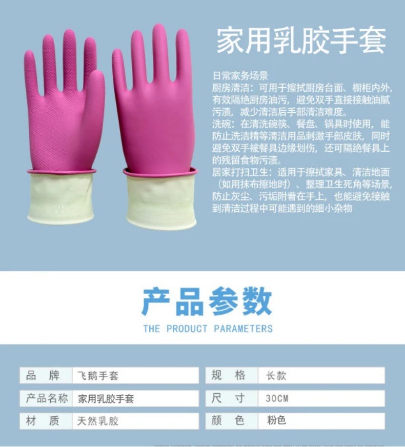 Guantes domésticos cocina limpia impermeable a prueba de agua a prueba de aceite lavandería doméstica lavaplatos goma al por mayor