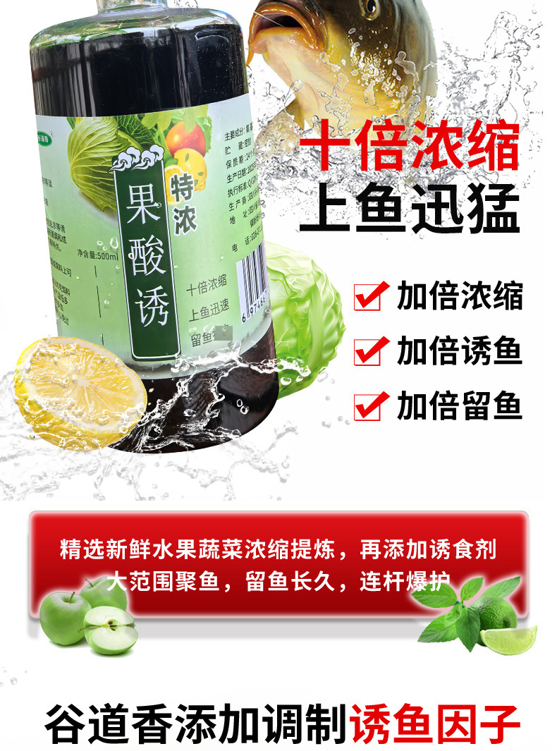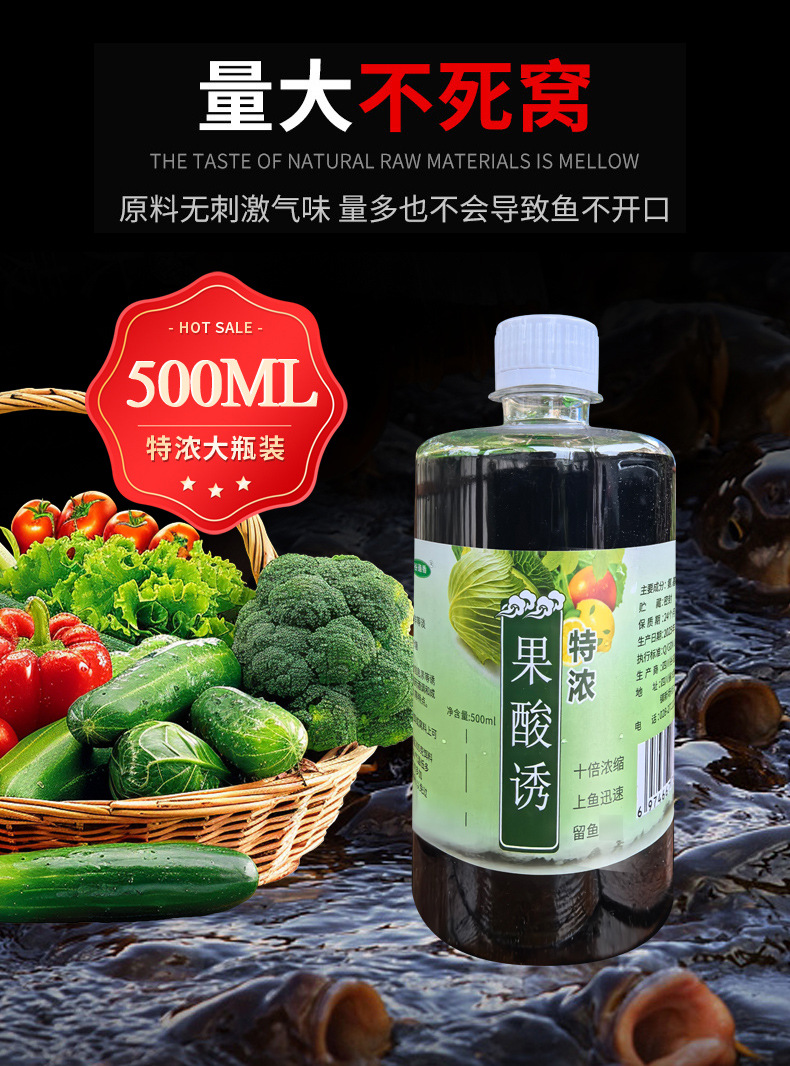 ácido fructífero de Guidao atractivo 500ml pescado pequeño medicamento abierto aditivo de pesca salvaje agujero negro señuelo de cebo de pesca de caparazón