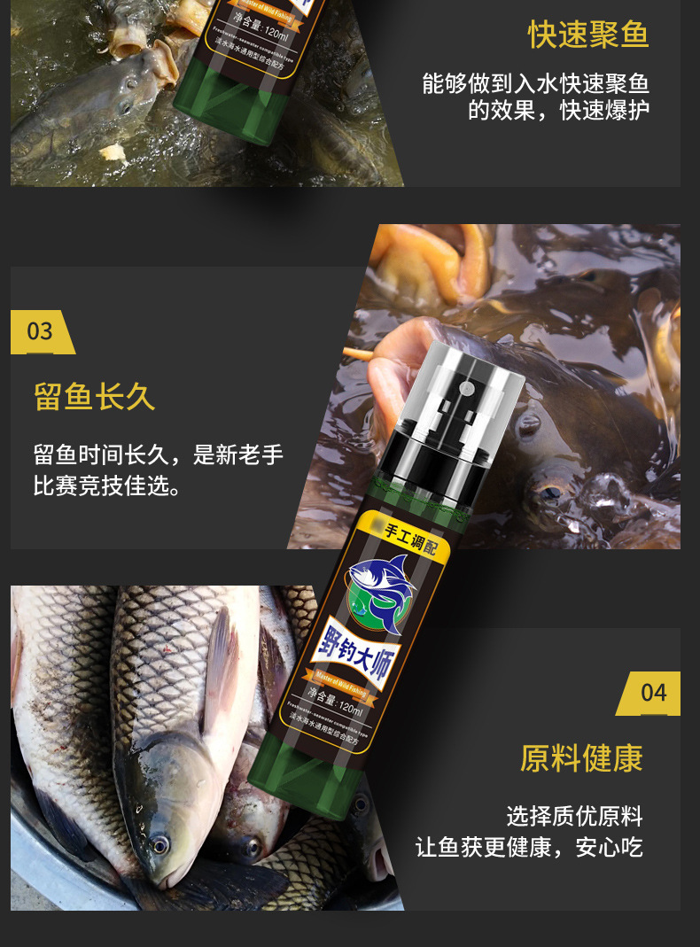 Maestro de pesca salvaje Agente de agua Embalse de Heikeng Medicina de pesca Carpa cruciana Hierba Luffalo Cebo Aditivo de inducción de apertura