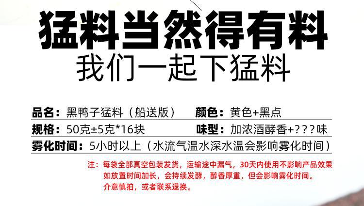 | Colores | Material de pato negro · Versión de pesca flotante 800g,Material feroz de pato negro · Versión de envío de barco 800g,Material feroz de pato negro · versión de pesca inferior 800g,Pato negro arroja postes Jianghu · Chberry Girl 800g,Pato negro carpa plateada cabezona · olor a pescado 800g,Pato negro, carpa plateada, carpa cabezona, olor a pescado 800g,Pato negro, carpa plateada, carpa cabezona, olor agrio 800g,Pico demonio de pato negro · Aolor agrio 800g,Pico demonio de pato negro · Fresa 800g,Pato negro loco · Rojo 800g,Pico demonio de pato negro · Rojo y verde dos colores 800g,Pico demonio pato negro · Amarillo 800g,Pico demonio pato negro · Rojo y amarillo dos colores 800g,Arena de campo de pato negro · 800g de olor agrio,Arena de campo de pato negro · Fresa 800g,Pato negro loco · amarillo 800g |