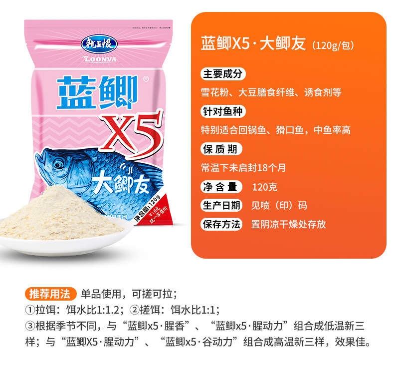 Dragon King odio campo batalla azul crucian X5 pescado poder Valle poder crucian carpa hierba carpa cebo pesca salvaje a través de cebo de fórmula de pesca