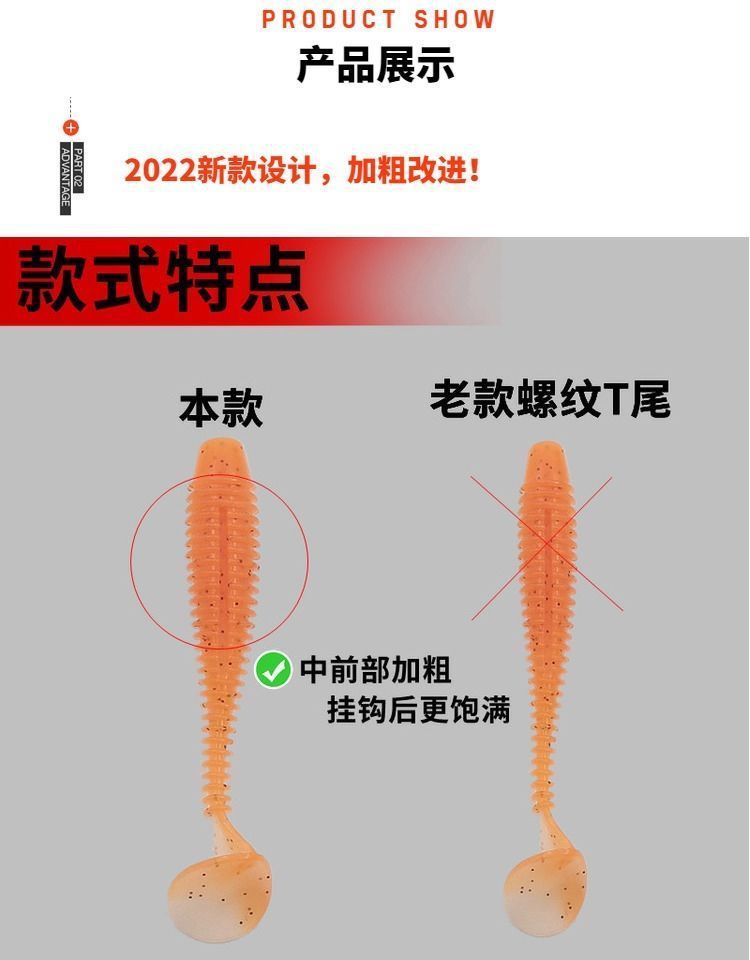 Los fabricantes venden cebo suave Luya, hilo de dos colores, cebo falso de cola en T, insecto blando, pez de agua dulce, pez mandarín, cebo artificial, pesca