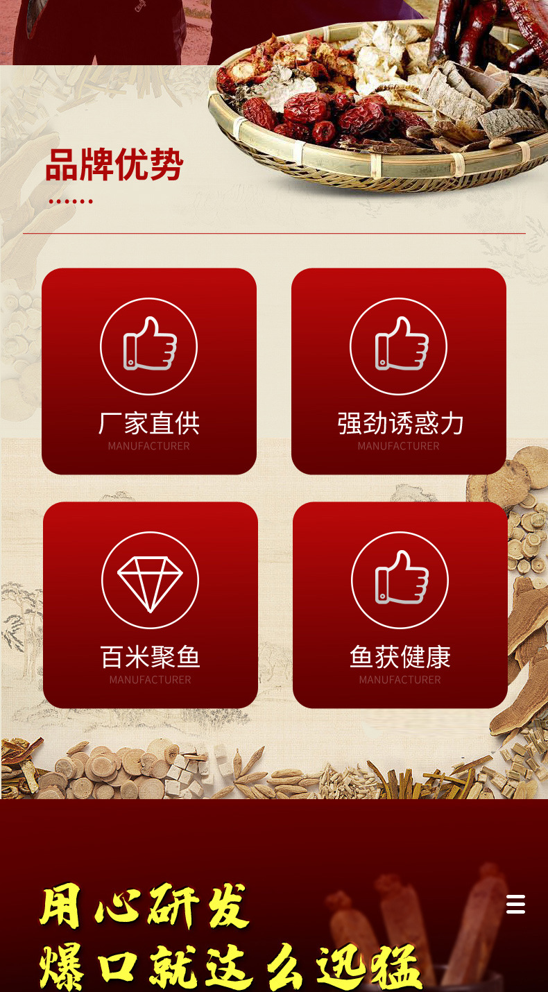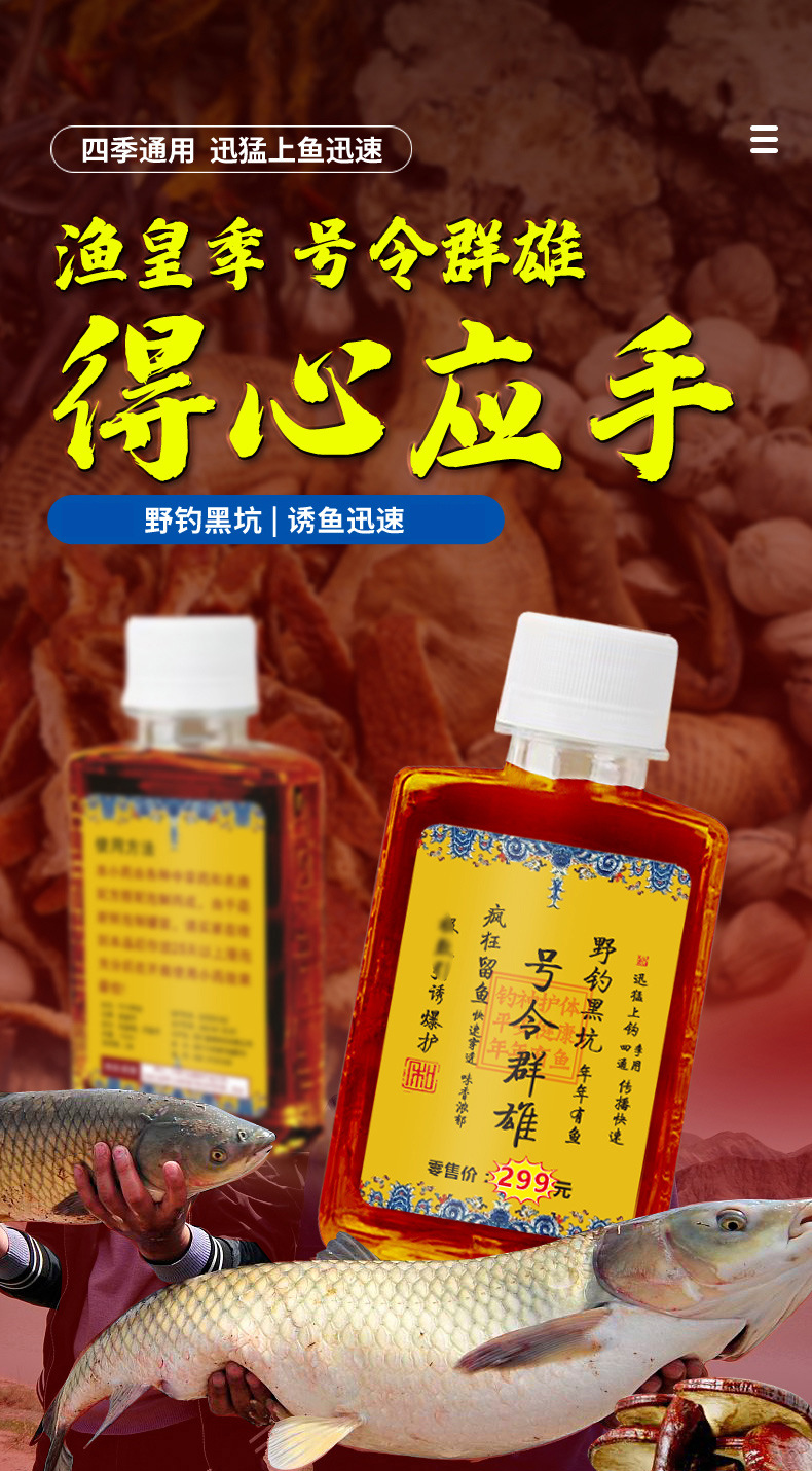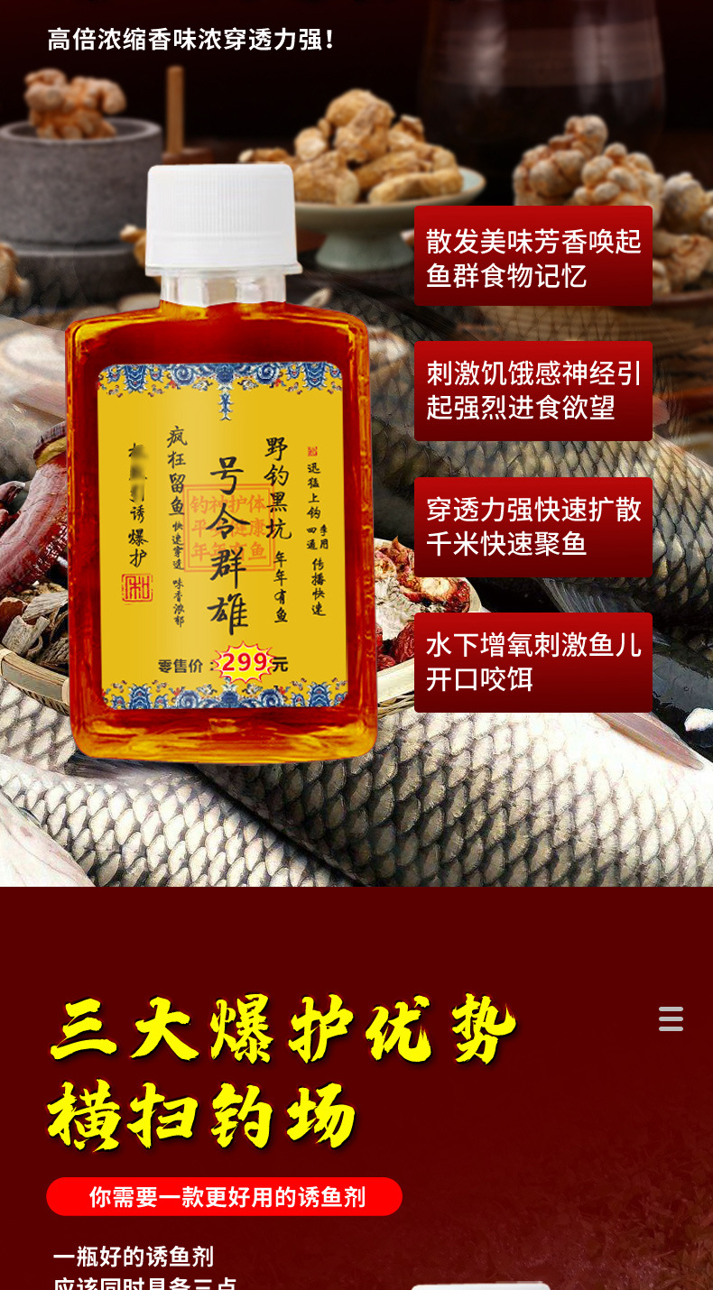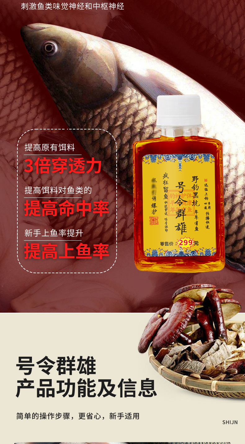 Yuhuang Ji orden qunxiong pesca salvaje hoyo negro crucian carpa hierba carpa cebo de agua dulce pesca medicina pescado cebo aditivo