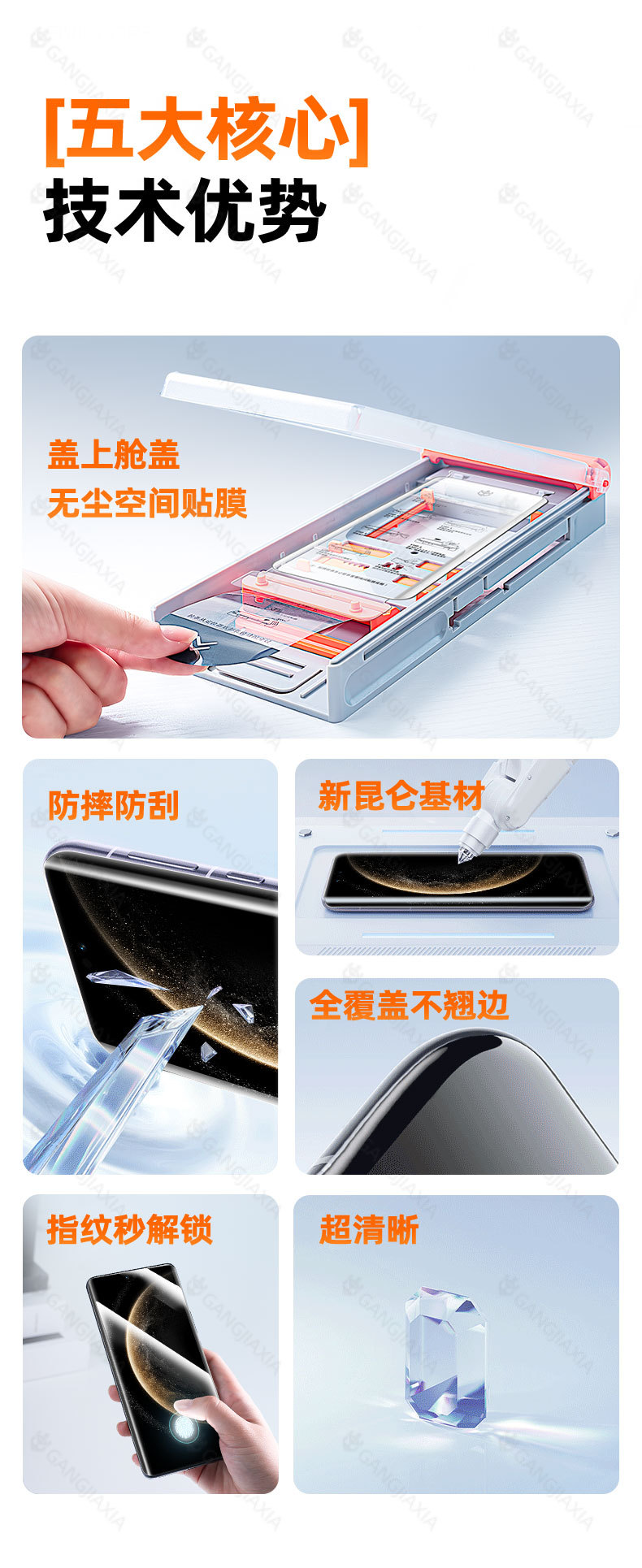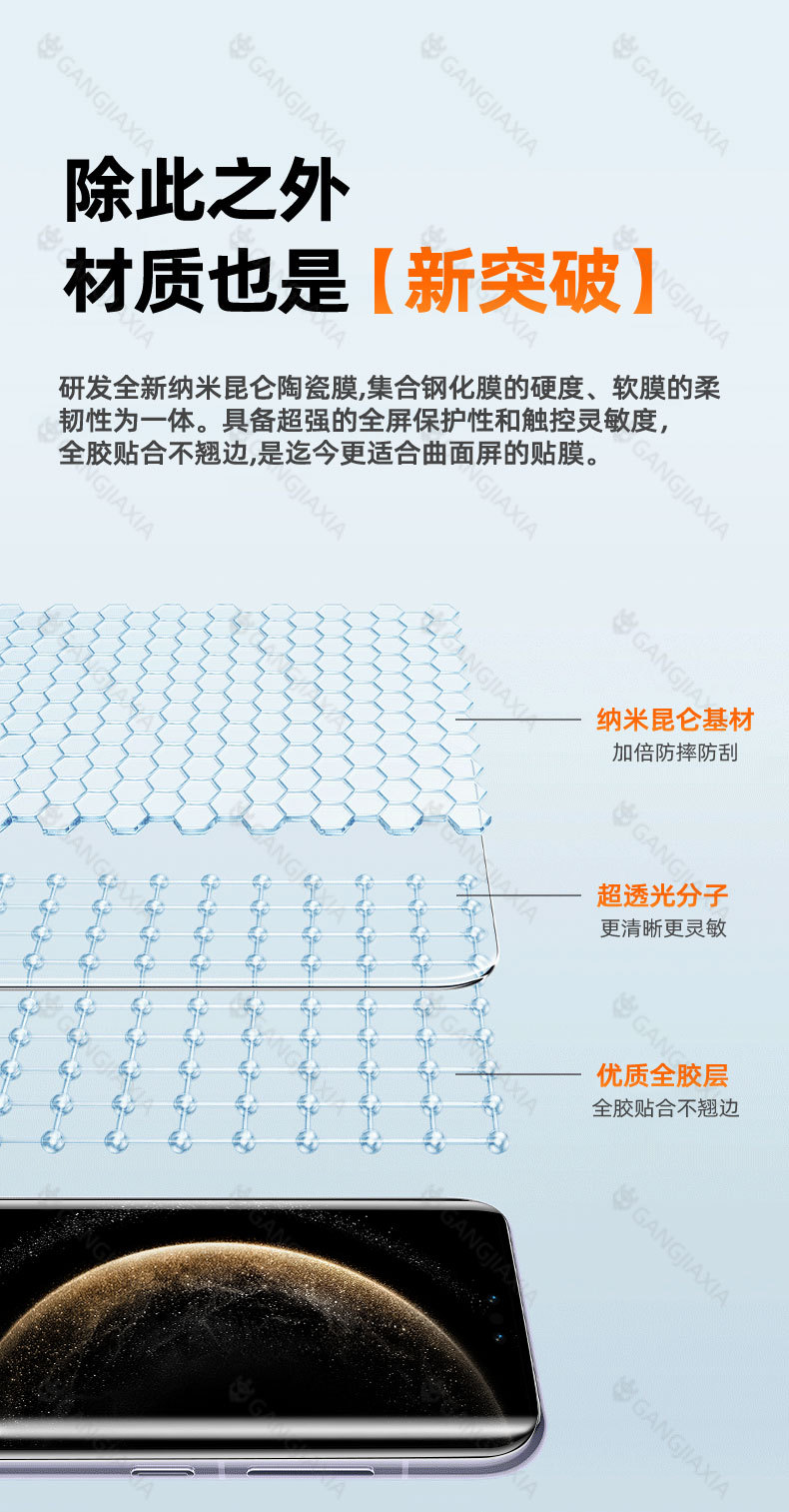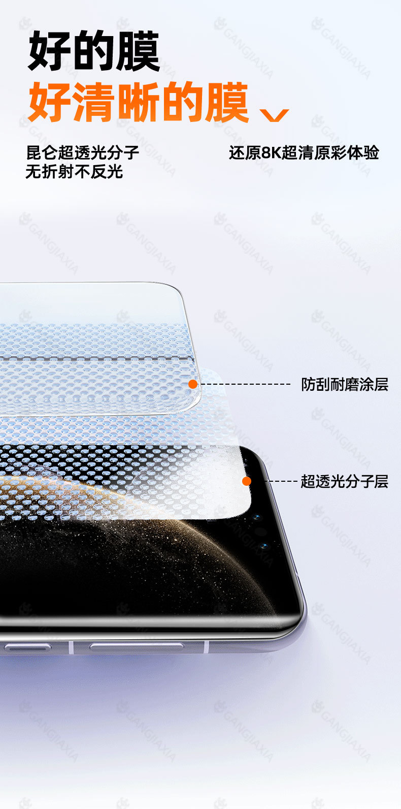 | Características de la película | Alta definición, anti - raspado, a prueba de explosiones, a prueba de polvo, anti - huellas dactilares, anti - caída, pantalla completa, reparación automática, caja de segundos |