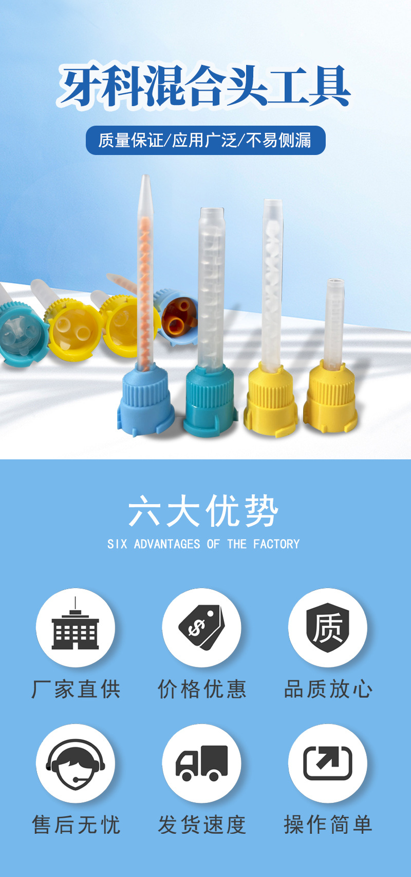 Dental de doble curado cabeza de inyección de resina película de impresión cuerpo ligero cabeza de entrega cabeza de mezcla tubo de mezcla material de inyección ahorro
