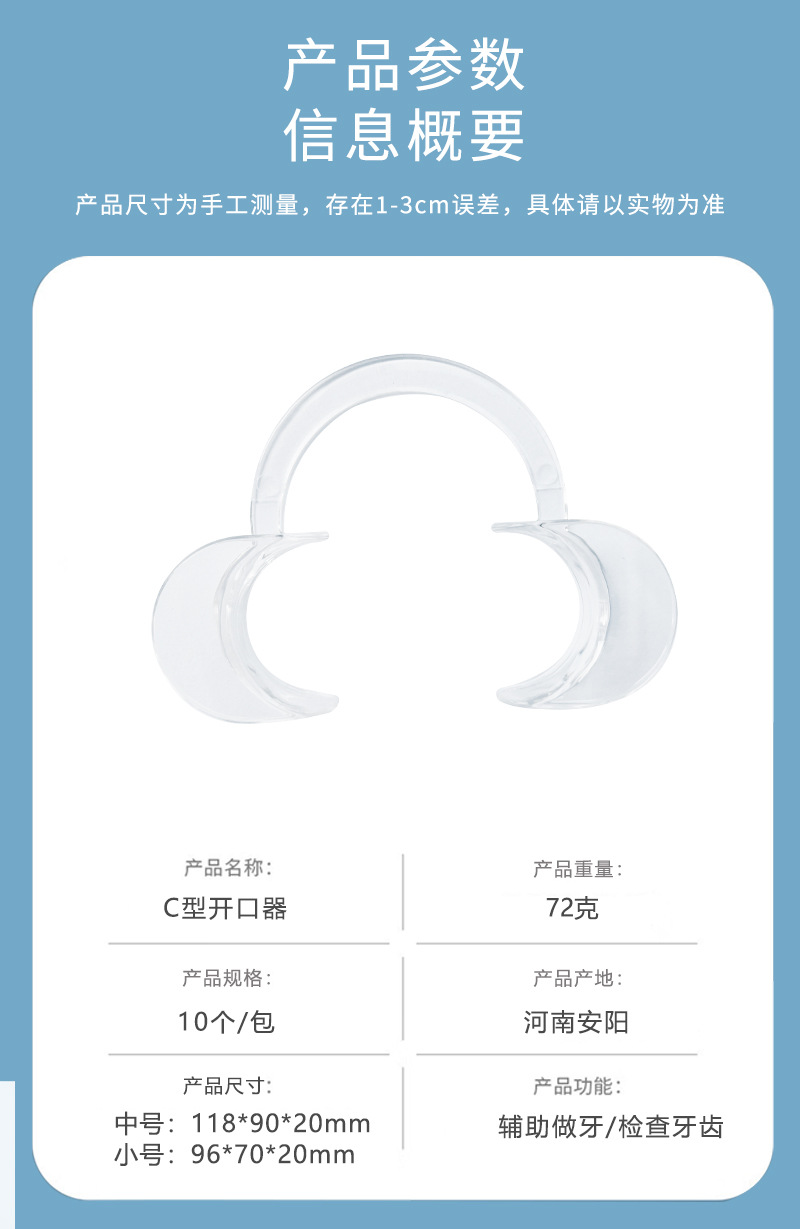 Modelo dental transfronterizo tipo C, accesorios para abrir la boca, color blanco pequeño, mediano y grande, se puede esterilizar a alta temperatura y desechable