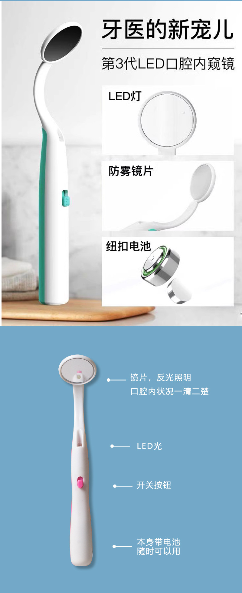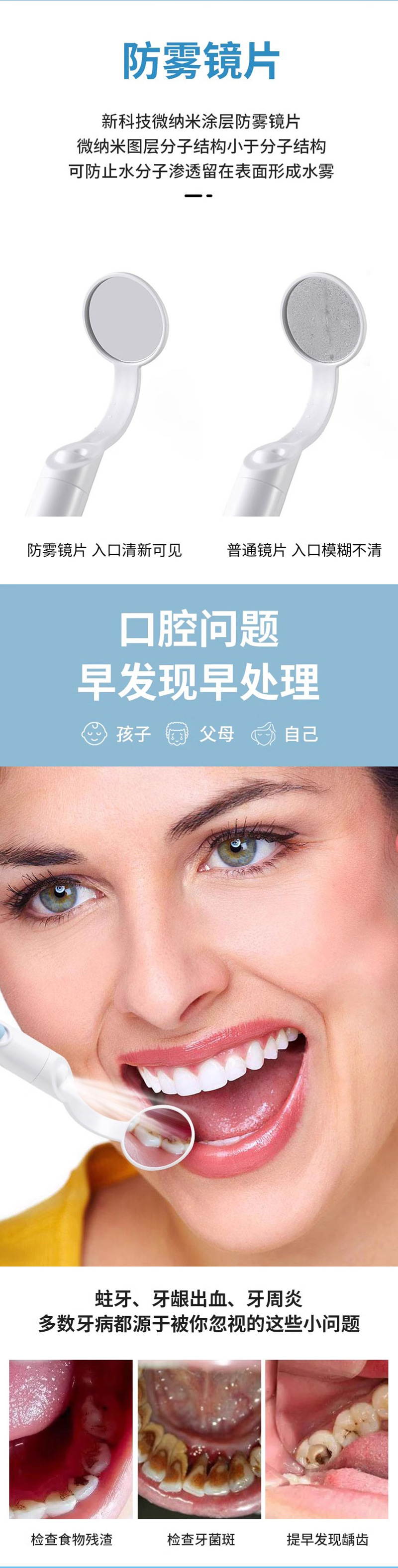 Espejo oral LED transfronterizo para cuidado bucal con espejo bucal iluminado, lente de inspección de endoscopio interno de dientes de visualización luminosa antivaho