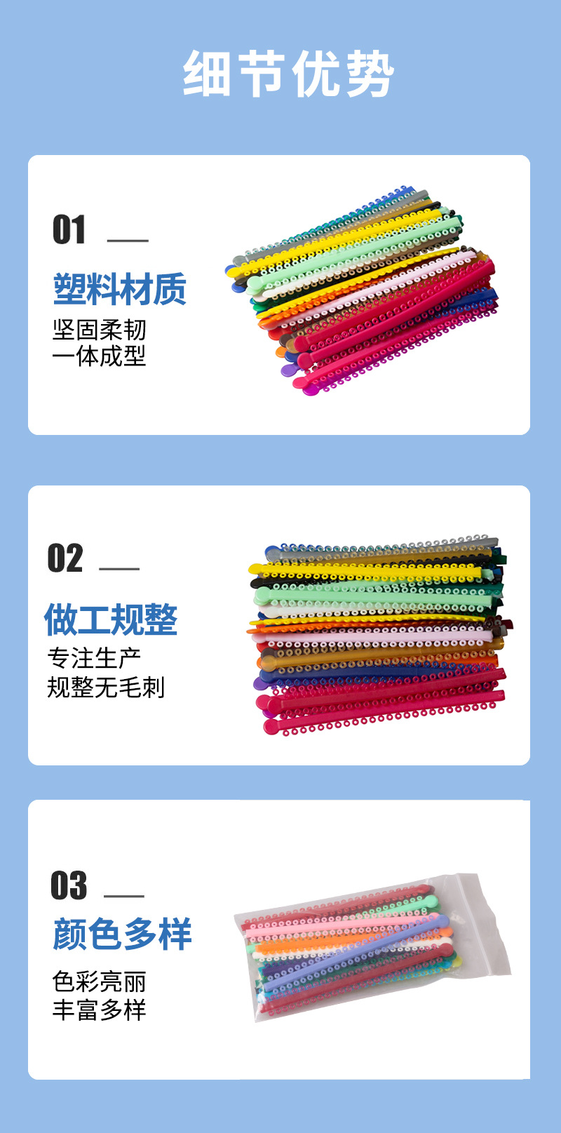 Anillos de ligadura ortodóntica transparentes largos para enseñanza dental transfronteriza, anillos de ligadura dentales de colores, 20 piezas/bolsa