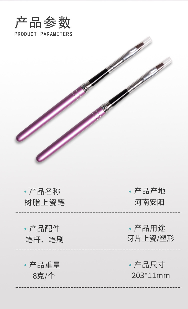 Dental plástico pluma estética reparación pluma resina que forma la pluma dientes de porcelana que forma la pluma cabeza plana resina material dental