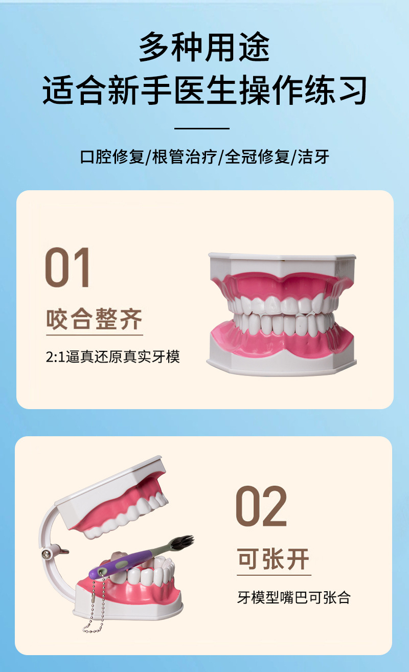 Modelo dental con el modelo dental del cepillo de dientes que enseña el instrumento oral de la dentadura modelo Dental 2 veces