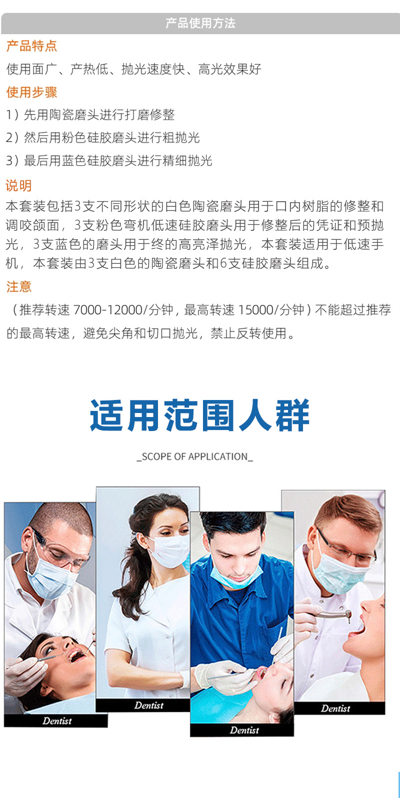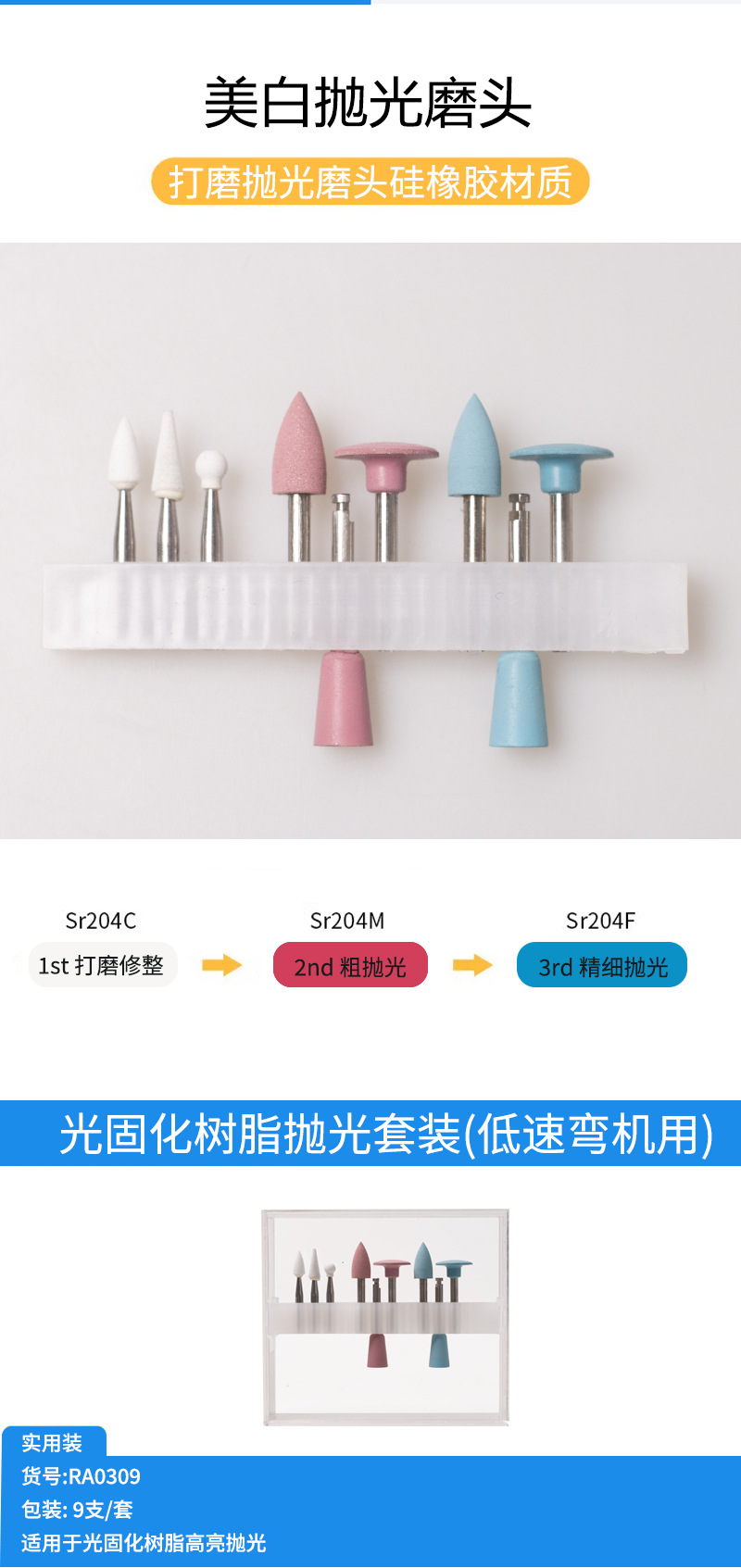RA0309 dental luz curado resina pulido traje baja velocidad teléfono móvil molienda cabeza de reparación de dientes de porcelana cabeza de molienda