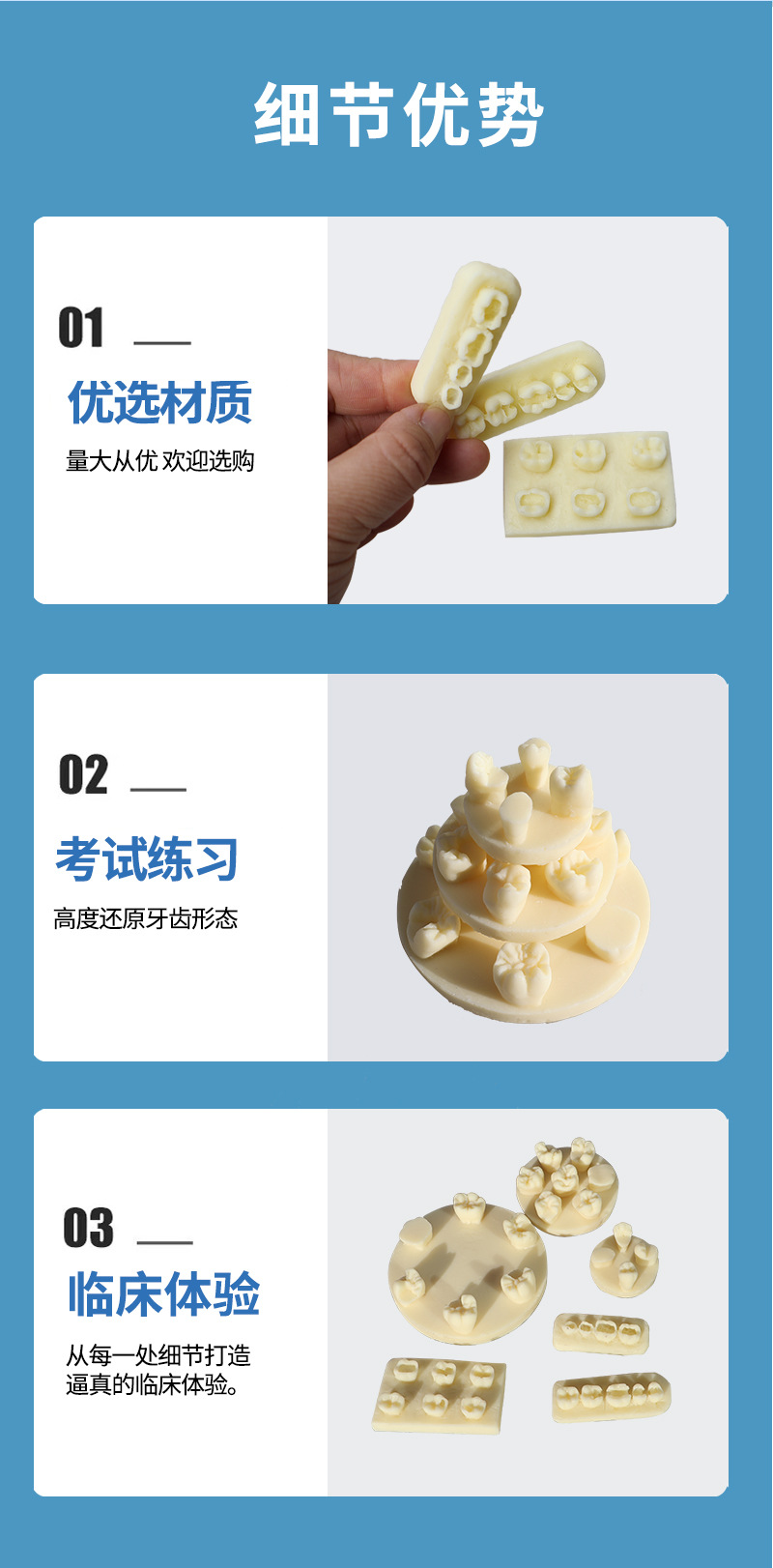 Ejercicios de rellenos de canales radiculares de dientes Inserción de resina Modelo de ejercicio de examen Ejercicios dentales Bloques de resina