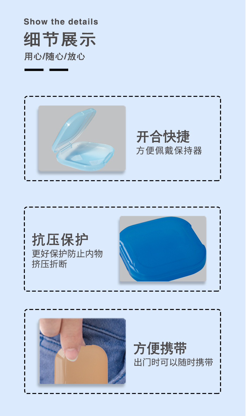 Caja de retención dental Caja de almacenamiento de brackets portátil Caja de retención de brackets extractor de cepillo Caja de almacenamiento de brackets transparente