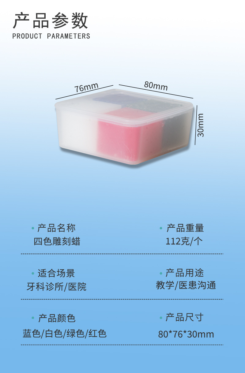 Materiales dentales, consumibles orales, productos de cera, cera para incrustaciones, cera de grabado para enseñanza, bloques de cera de cuatro colores para enseñanza
