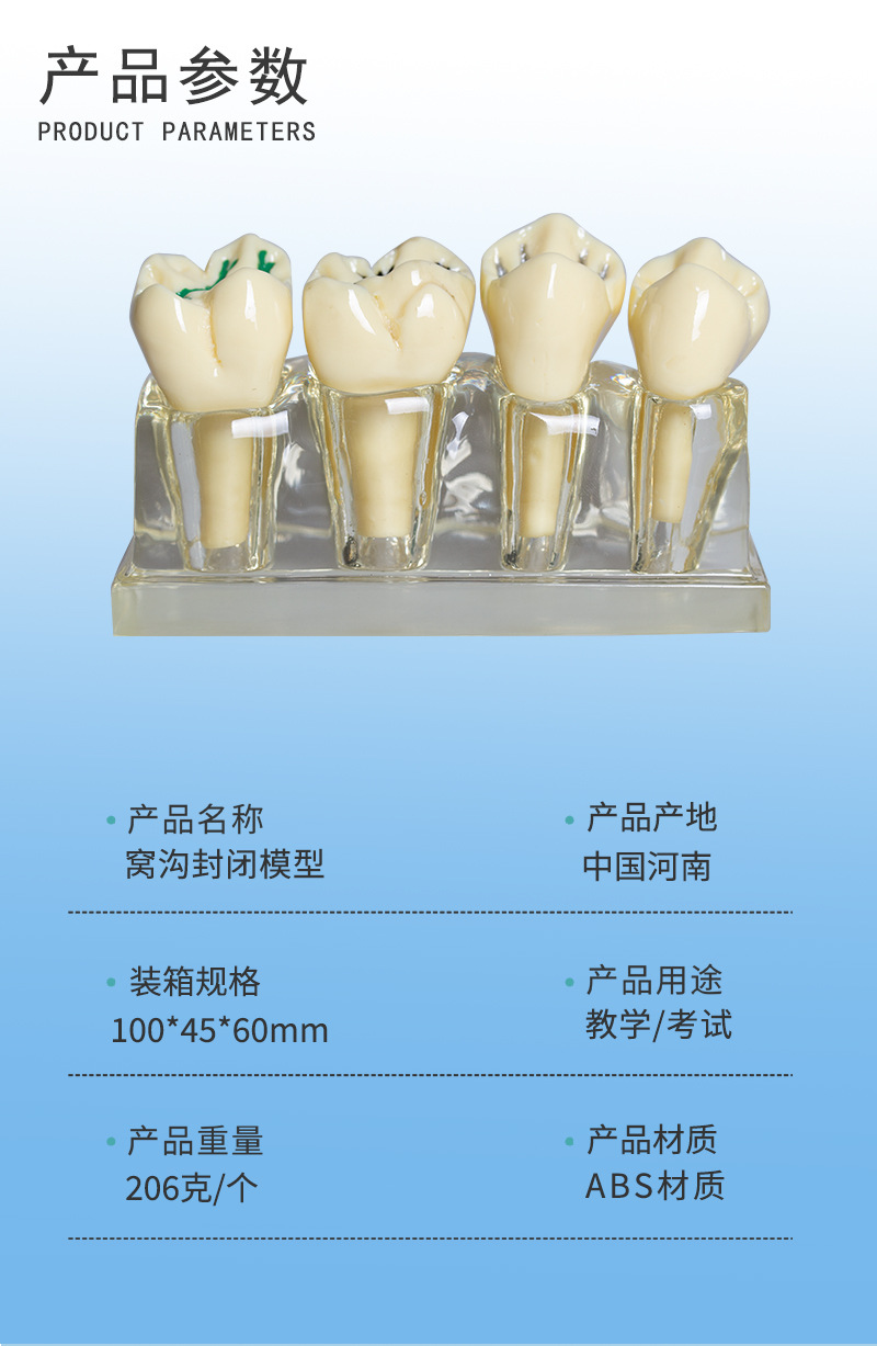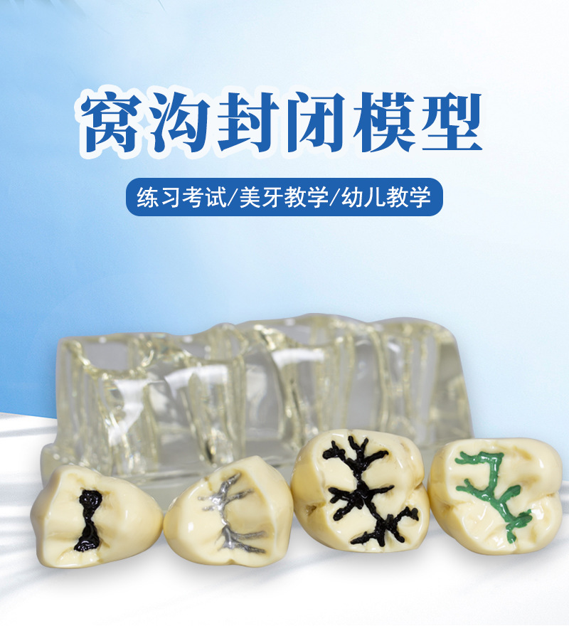 Modelo de cierre de fosas y fisuras dentales para niños contra la caries y la caries Modelo de cierre de fosas y fisuras Modelo transparente