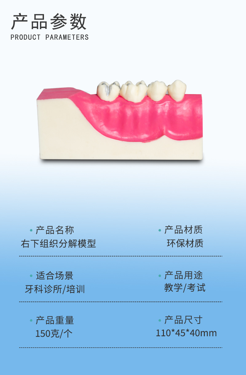 Modelo de descomposición del tejido del diente posterior inferior derecho de la cavidad oral del diente