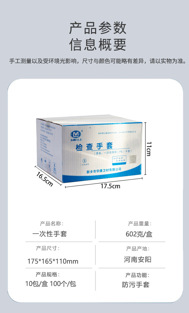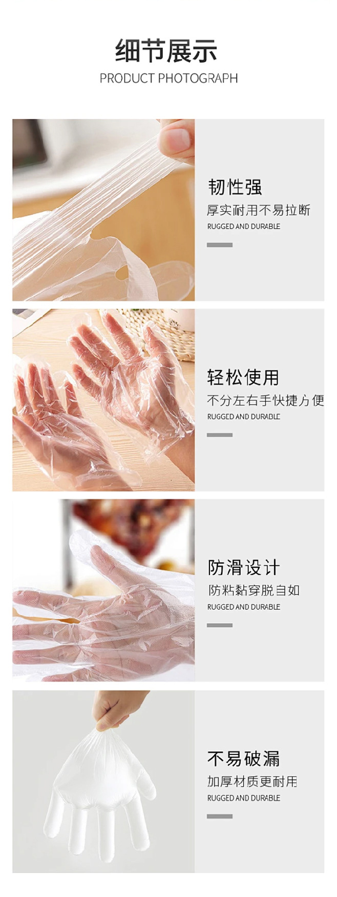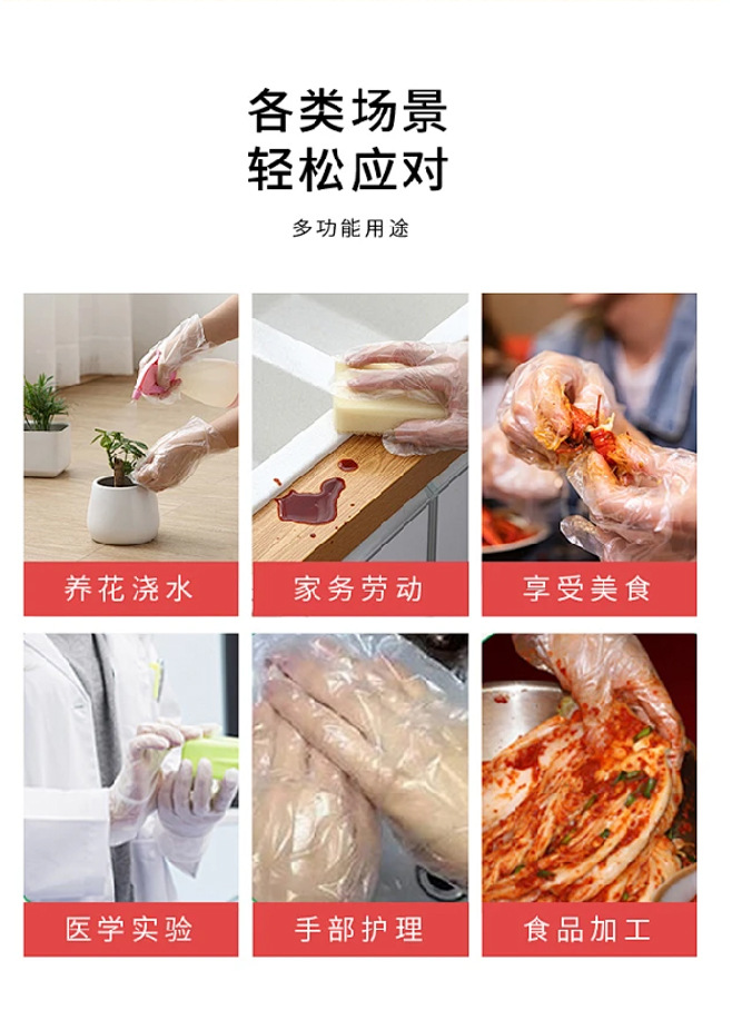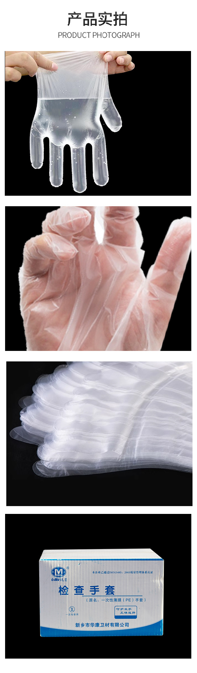 Guantes de inspección dental Guantes de inspección de plástico de PE desechables Guantes de película transparente de belleza