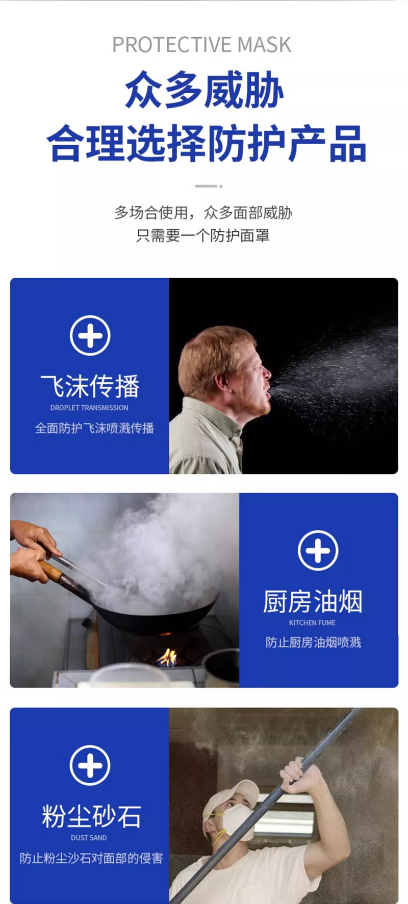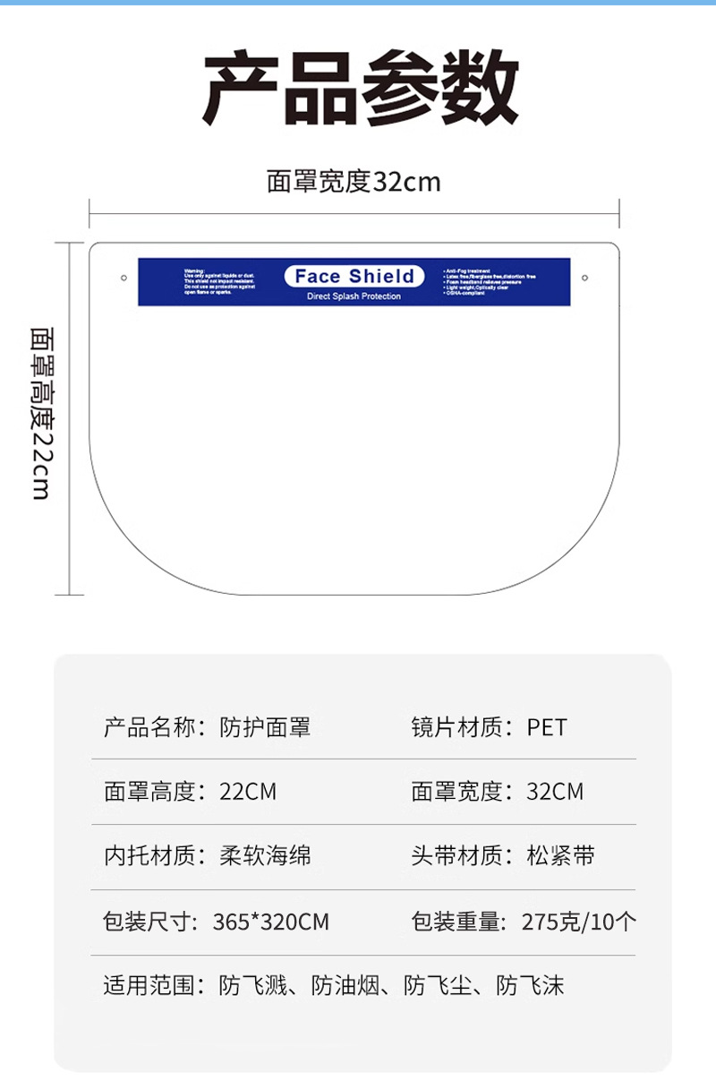 Máscara de aislamiento protectora no médica Hoja de PET resistente a altas temperaturas Accesorios antiespuma Superficie protectora transparente desechable de doble cara