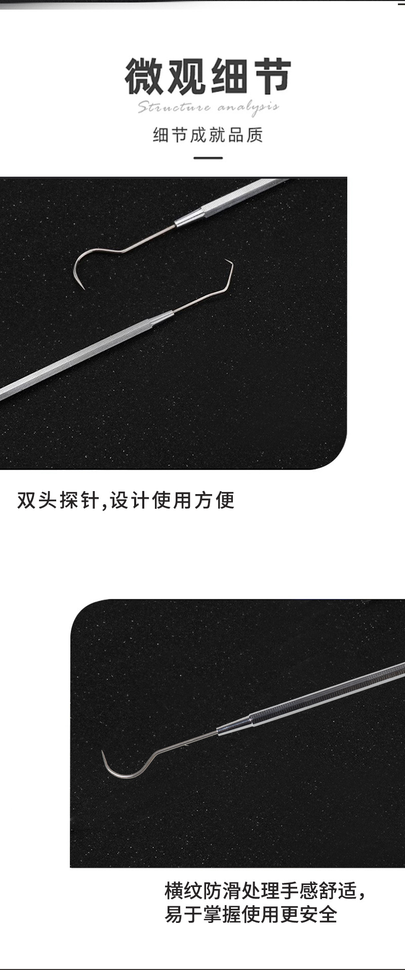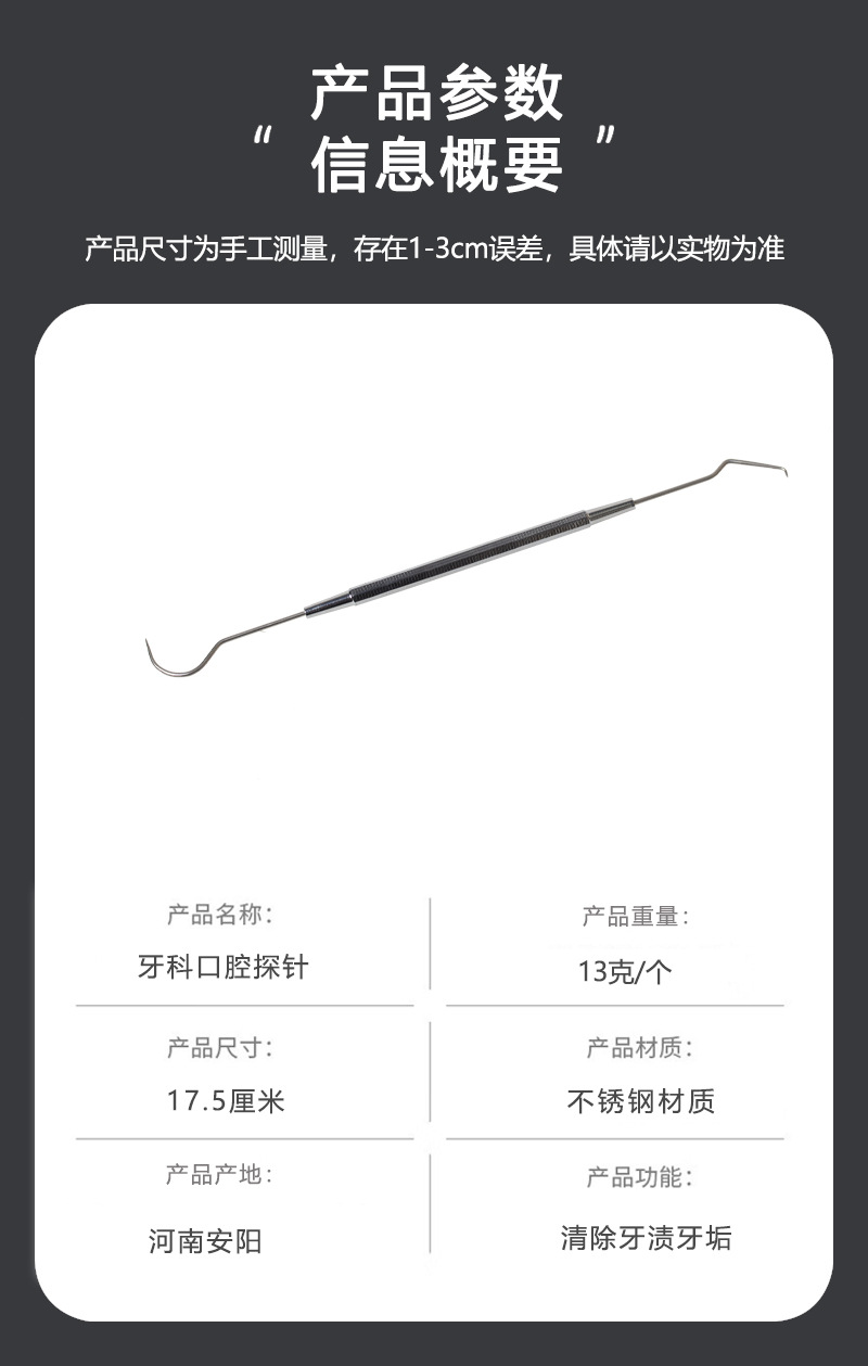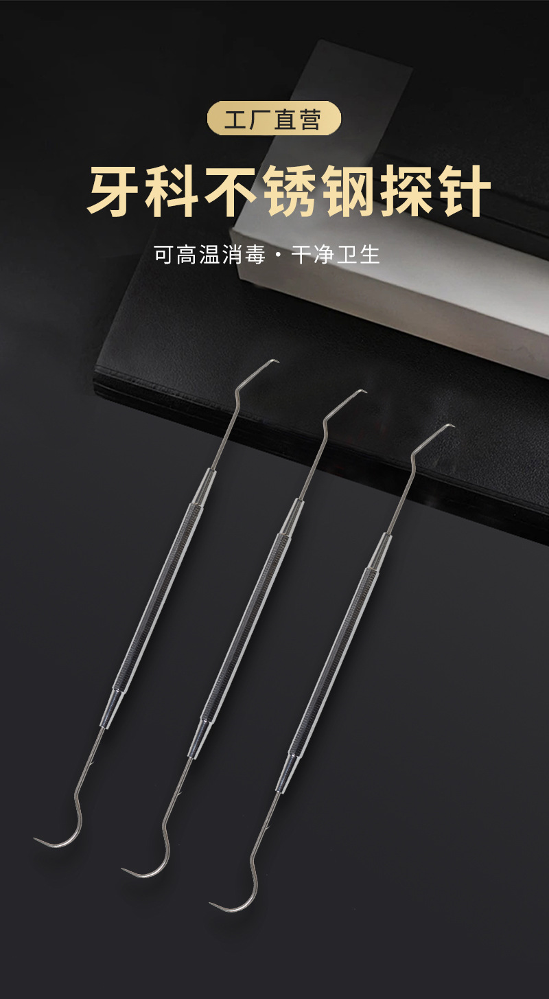Sonda dental gancho de diente de acero inoxidable de doble cabeza sonda oral sonda Dental Cuidado Oral fabricante en stock
