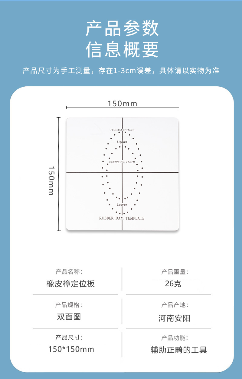 Placa de posicionamiento oral dental sello de goma posicionamiento localizador de caucho alcanfor tela puncher sello de goma Placa de perforación
