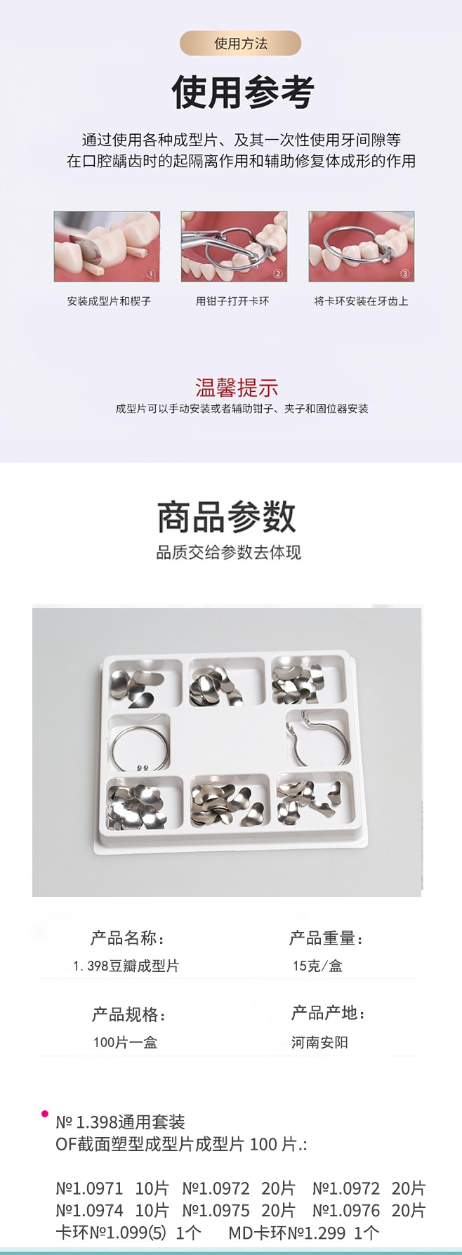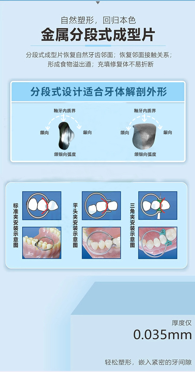 Dental Douban formando pieza 1.398 de acero inoxidable que forma la pieza de relleno del diente formando pieza de metal pieza 100 unids/caja