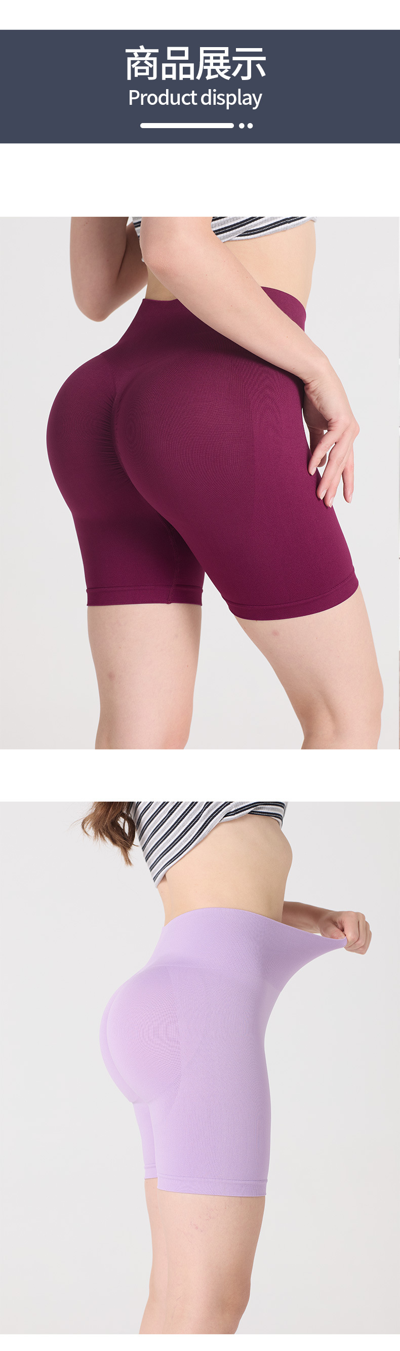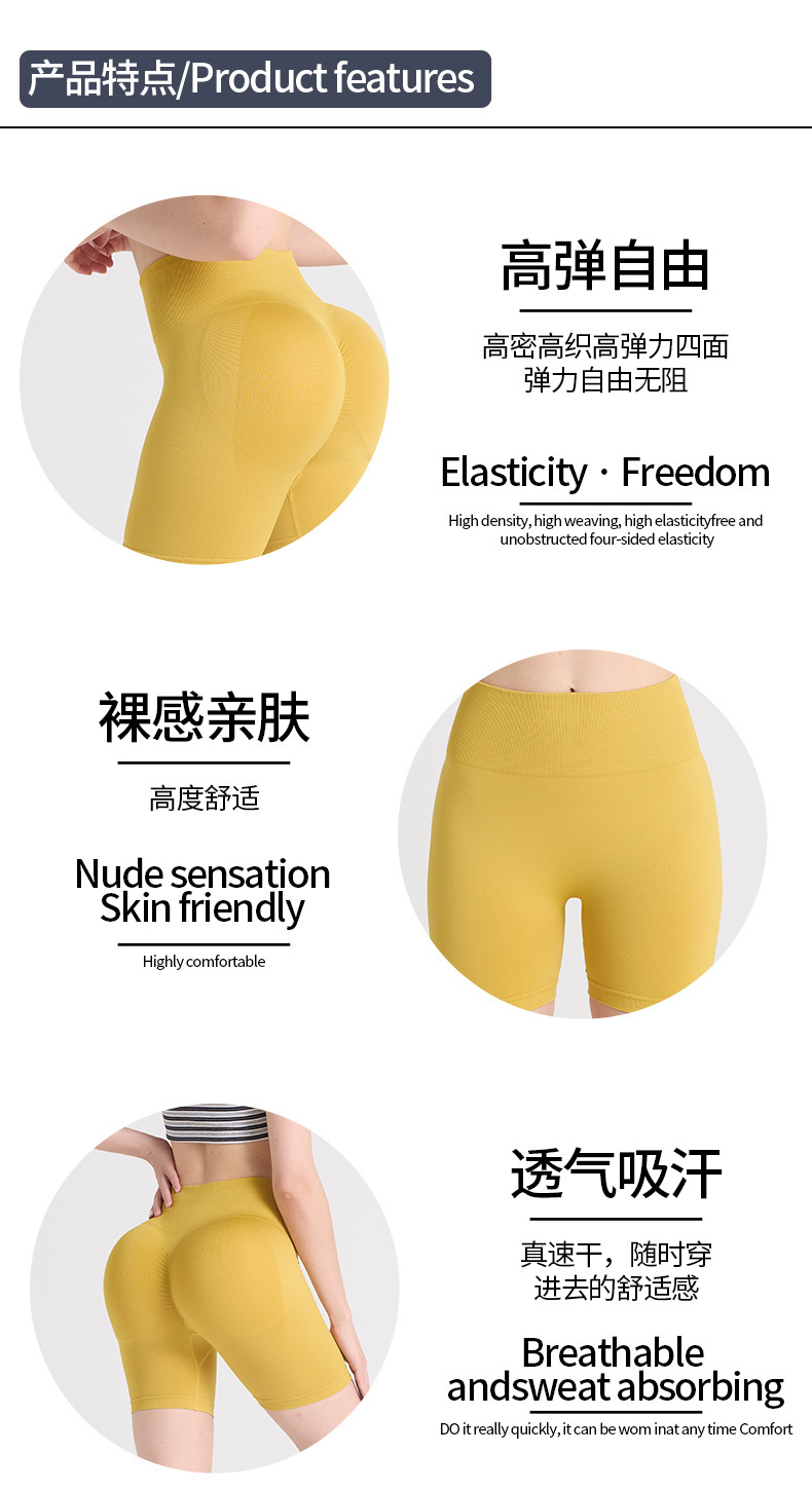 Pantalones cortos de yoga sin costuras transfronterizos para mujer pantalones de tres puntos con levantamiento de cadera de melocotón de cintura alta y elástico alto