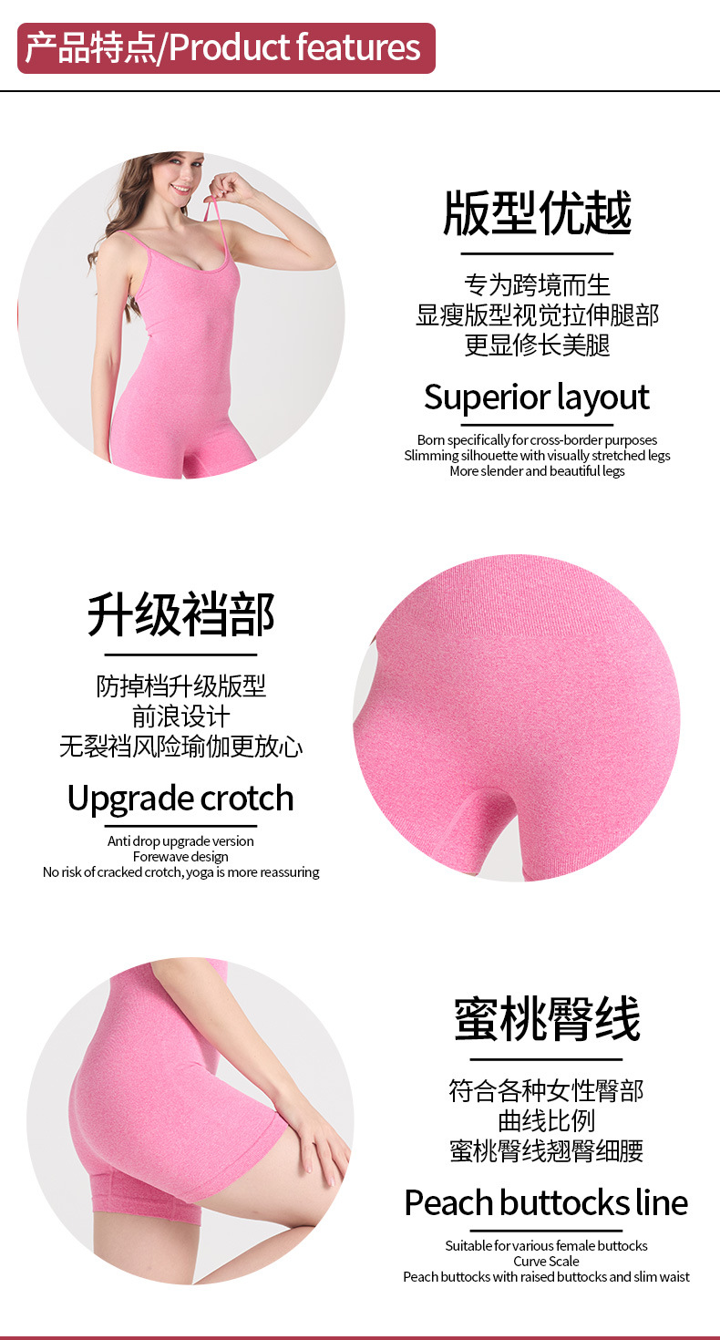 Chalecos transfronterizos europeos y americanos Yoga mono sin costuras glúteos sexy estilo cabestrillo nuevo estilo deportivo mono pantalones cortos mujeres
