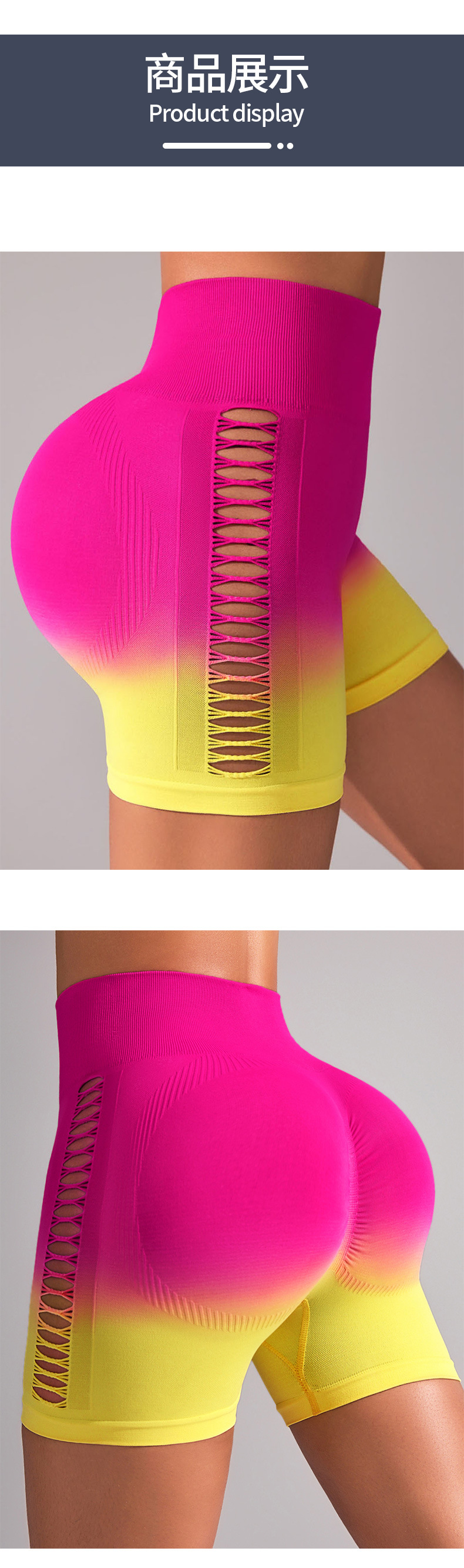 Pantalones cortos de yoga huecos laterales degradados de Amazon