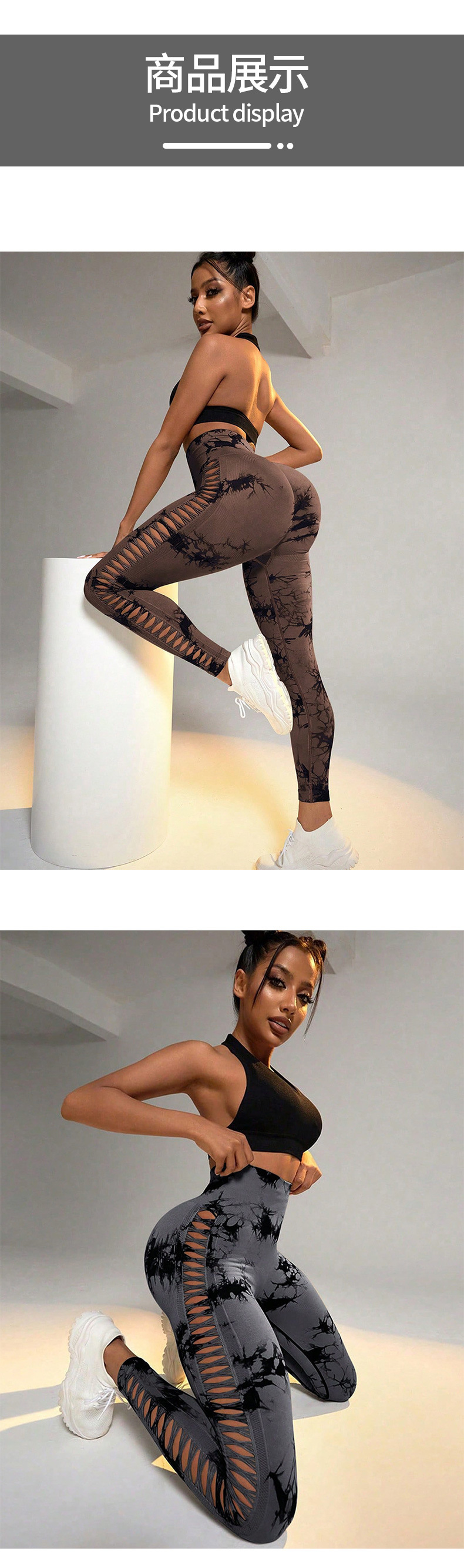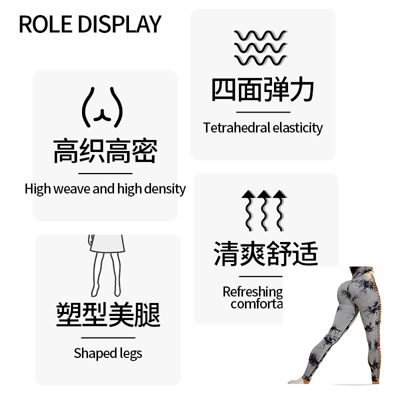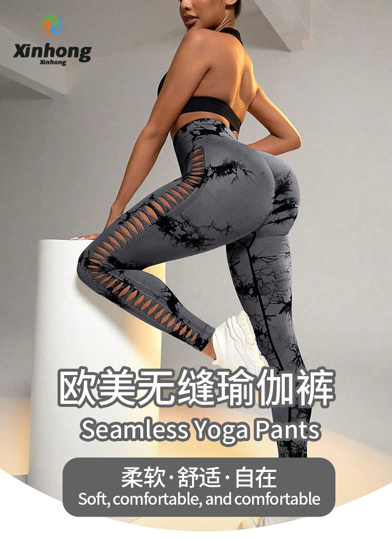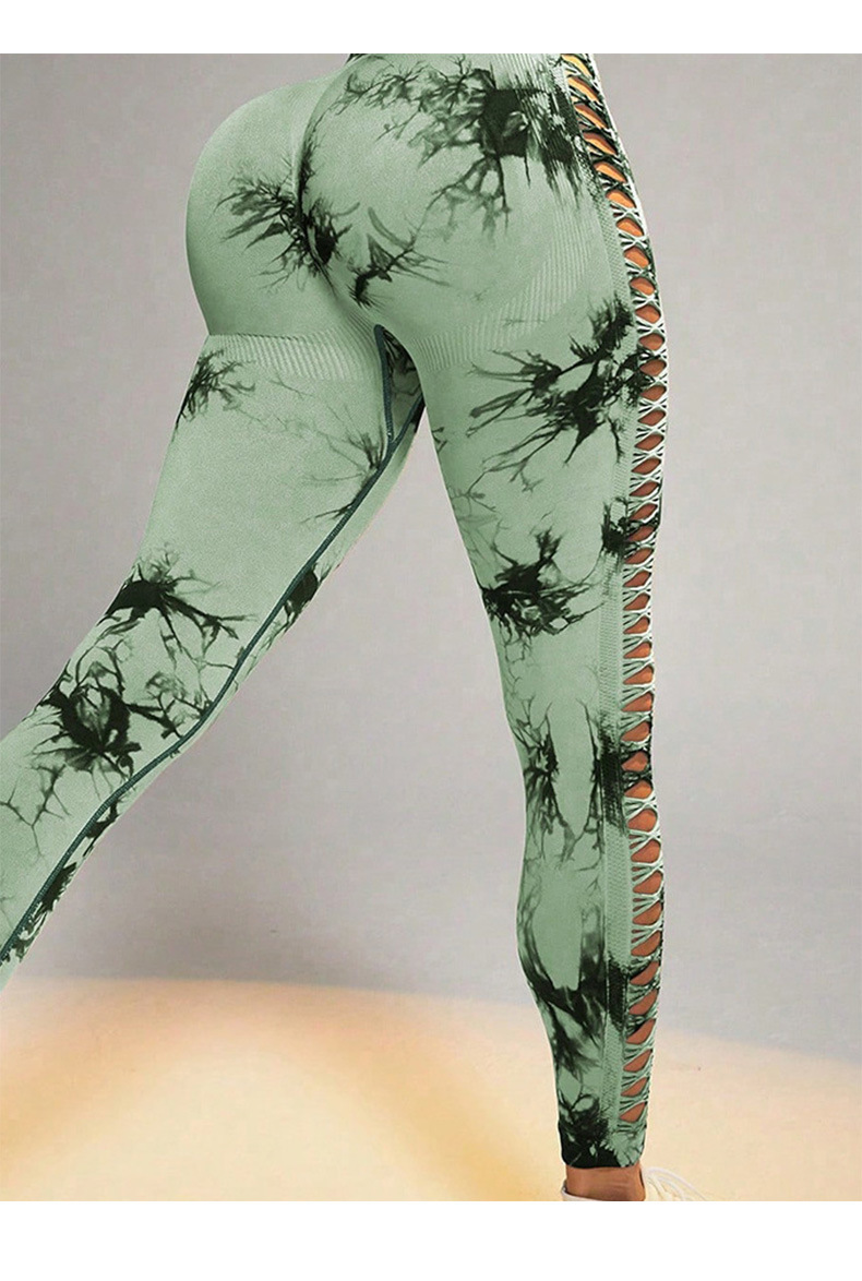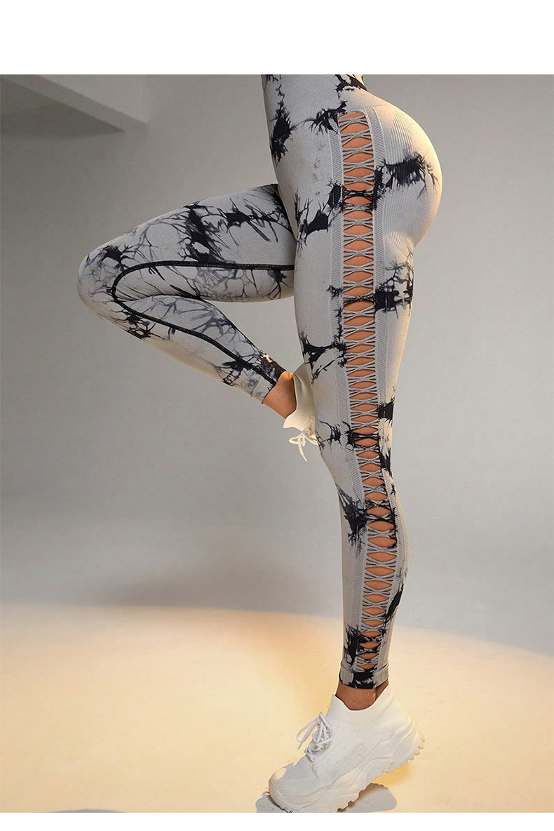 Pantalones de yoga huecos transfronterizos al aire libre, cintura alta, melocotón, glúteos, pantalones deportivos, ropa de yoga sin costuras con teñido anudado transpirable para mujeres