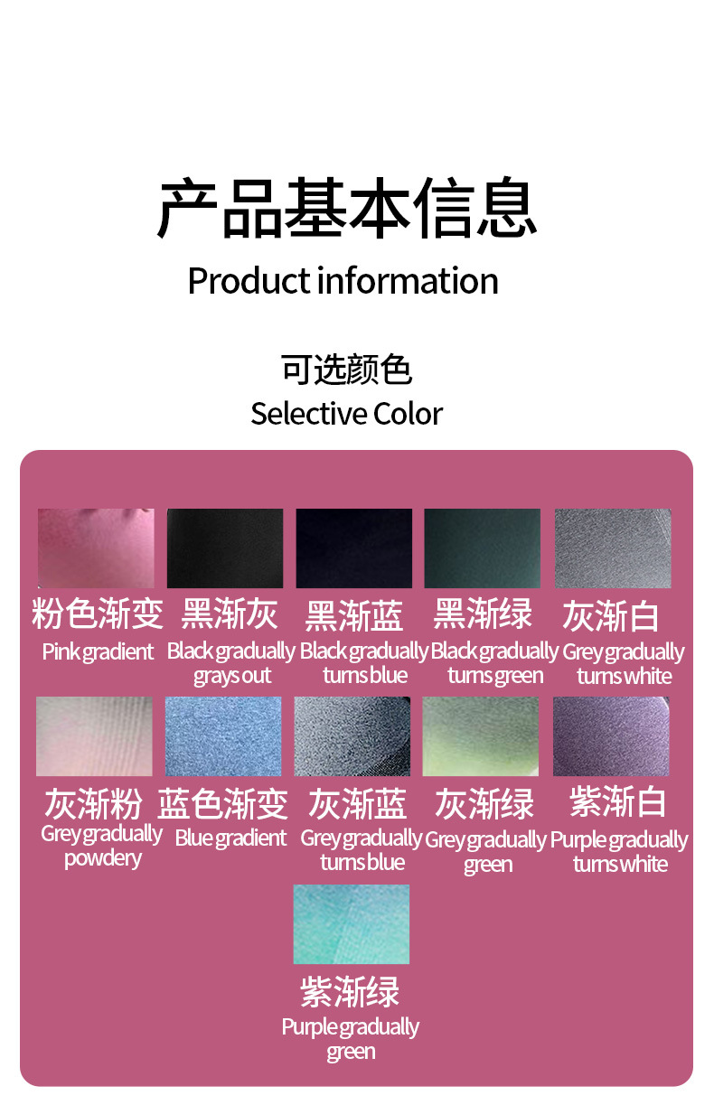 | Color | El rosa se desvanece [pink gradent], el negro se desvanece [black gradent grey], el negro se desvanece [black gradent blue], el negro se desvanece [black gradent green], el gris se desvanece [gray gradent white], el gris se desvanece [gray gradent white], el gris se desvanece [gray gradent pink], el azul se desvanece [blue gradent], el gris se desvanece [gray gradent blue], el gris se Vuelve verde [gray gradent green], el morado se desvanece [purple gradent white], el morado se desvanece [purple gradent green] |