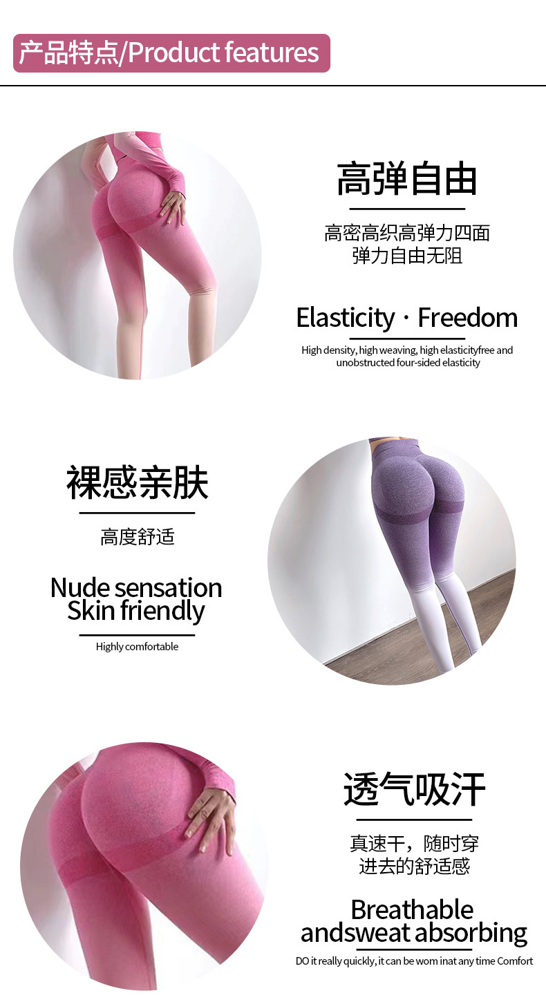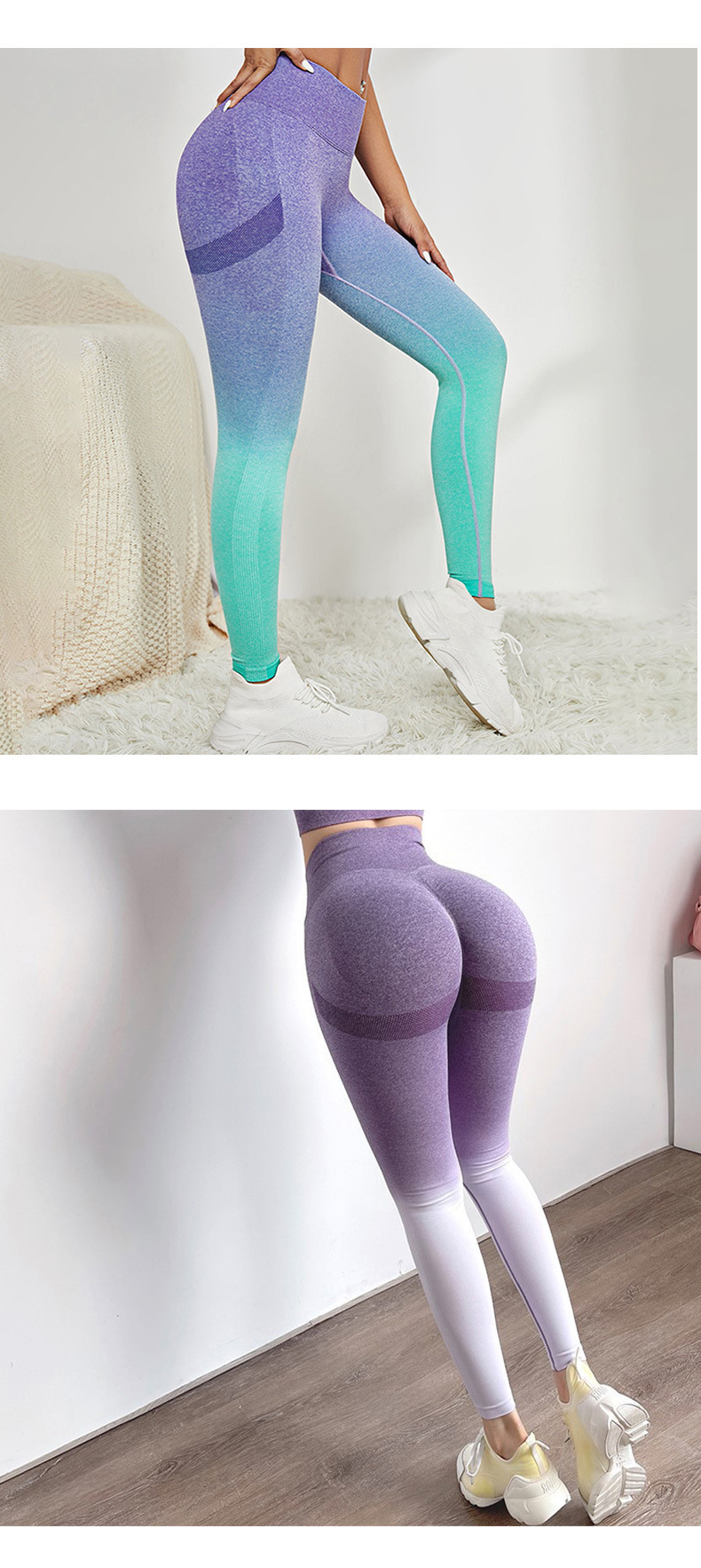 Europa y los Estados Unidos transfronterizos sin costuras gradiente de pulpa de mel桃 caderas alta cintura elástica transpirable al aire libre pantalones de fitness ajustados