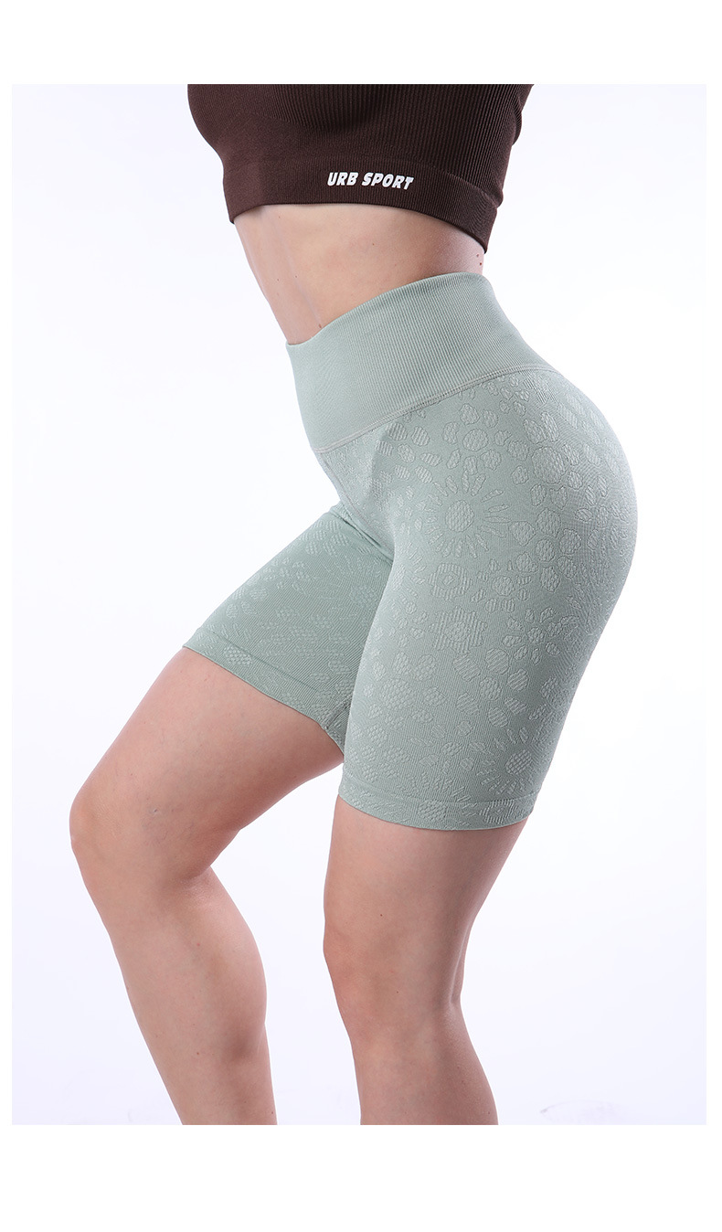 Pantalones cortos de fitness de cadera de melocotón europeos y americanos pantalones de cinco puntos deportivos ajustados con estampado de mujer pantalones cortos de yoga de cintura alta sin costuras