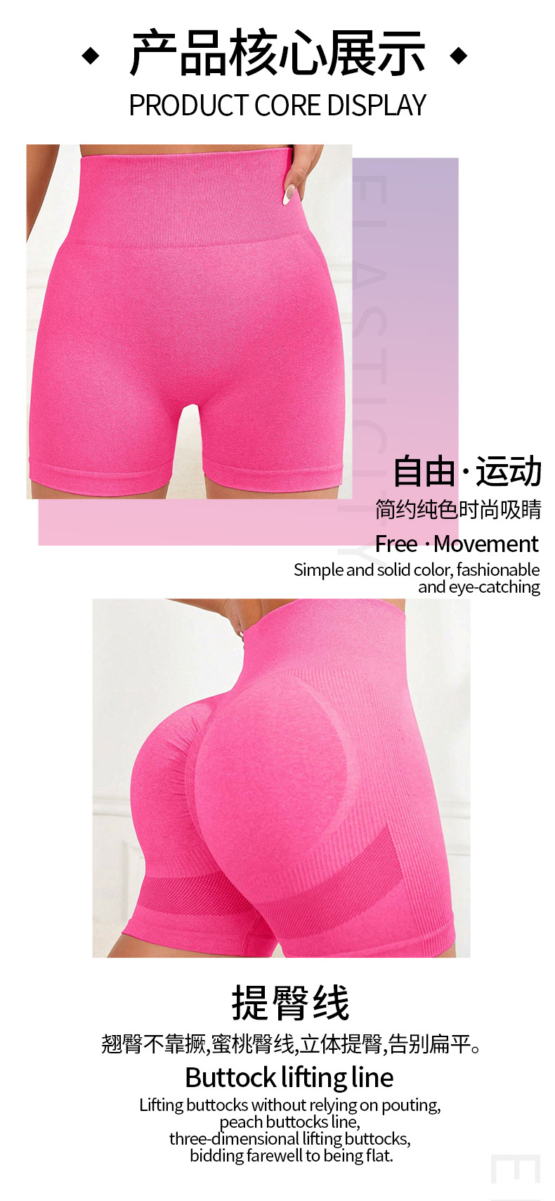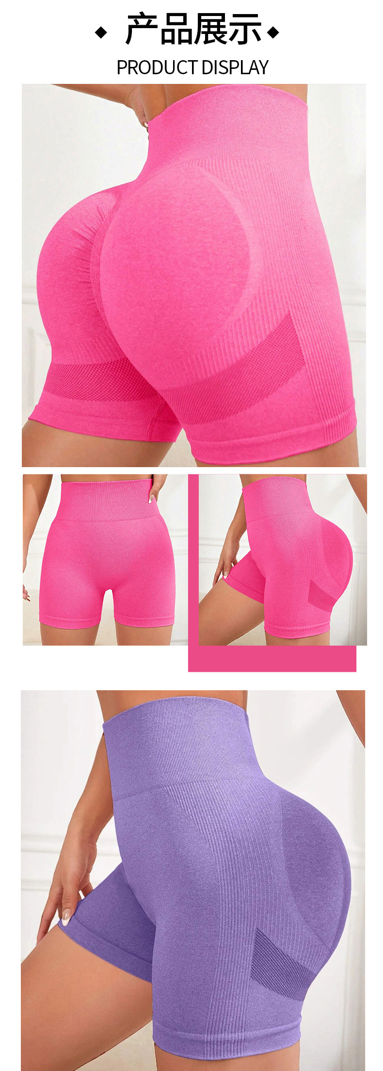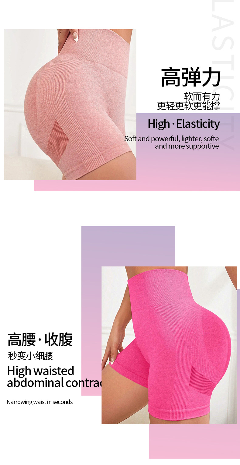 Nuevos pantalones cortos de yoga europeos y americanos transfronterizos, cintura alta sin costuras, caderas, caderas de melocotón, pantalones de tres puntos, pantalones cortos deportivos de fitness, mujeres