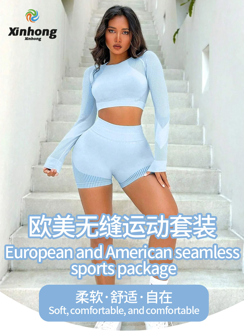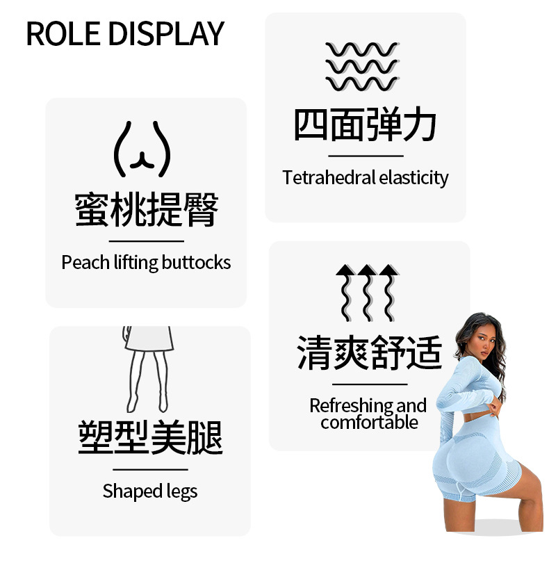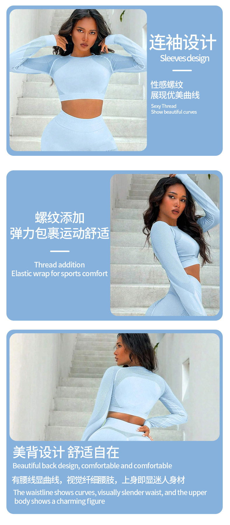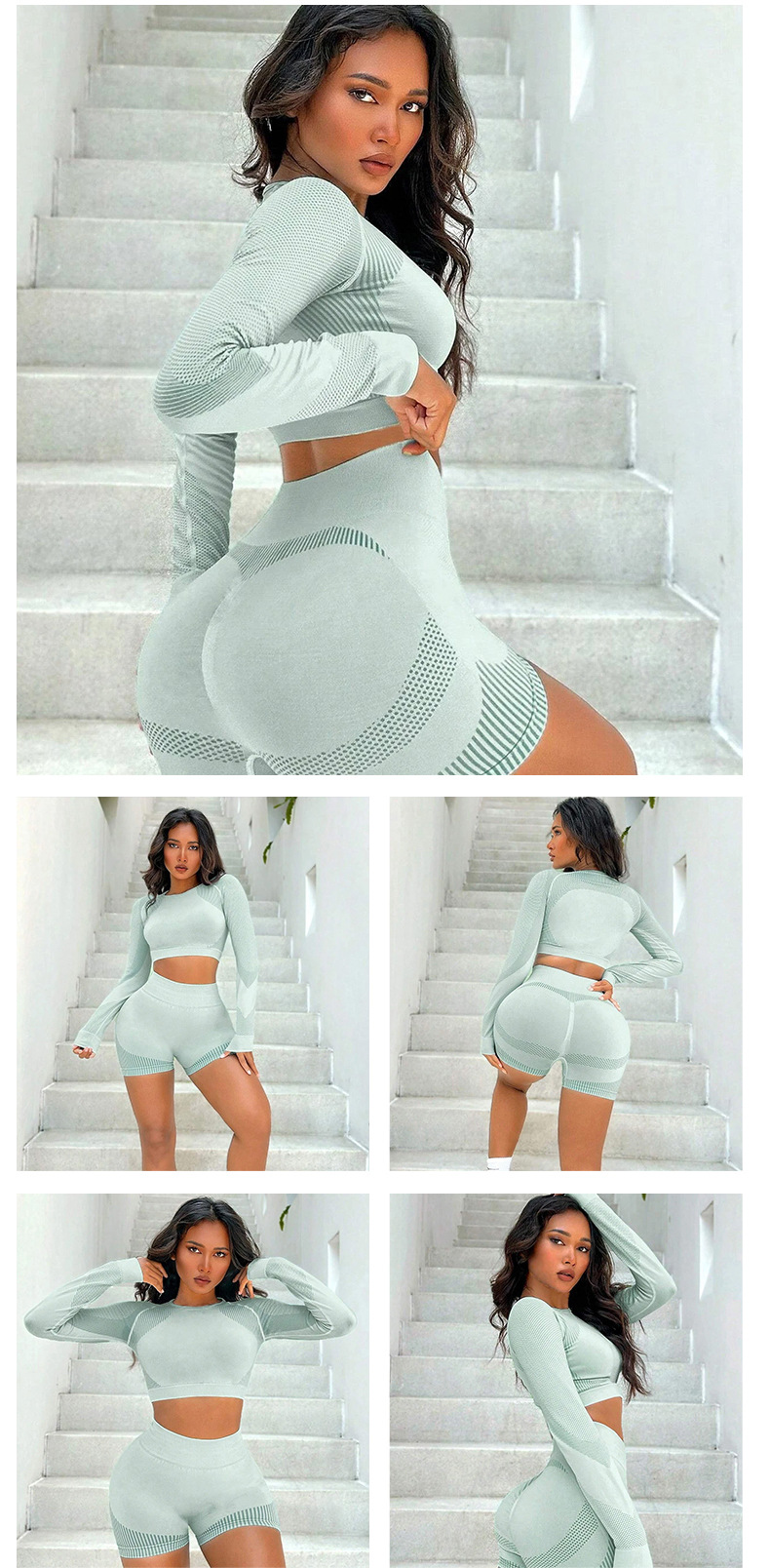 Traje de fitness sin costuras transfronterizo europeo y americano melocotón cadera cintura alta fitness manga larga tres puntos deportes yoga pantalones cortos traje mujeres