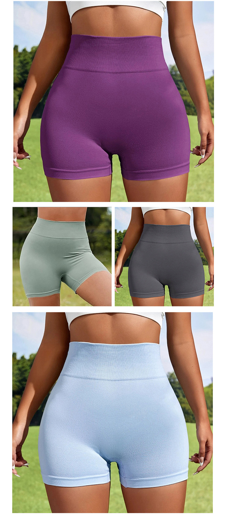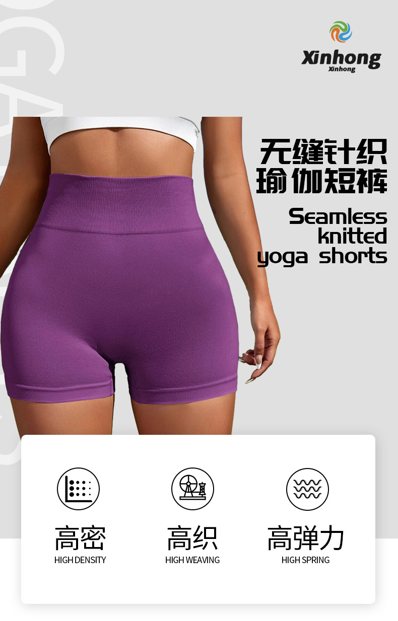 Pantalones cortos de Yoga de punto sin costuras transfronterizas de Europa y América Peach Hip lifting pantalones de fitness de cintura alta correr pantalones cortos deportivos tres puntos mujeres